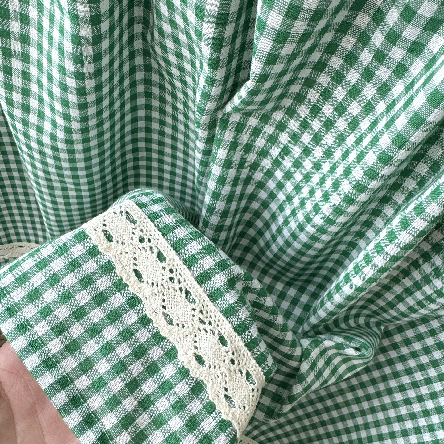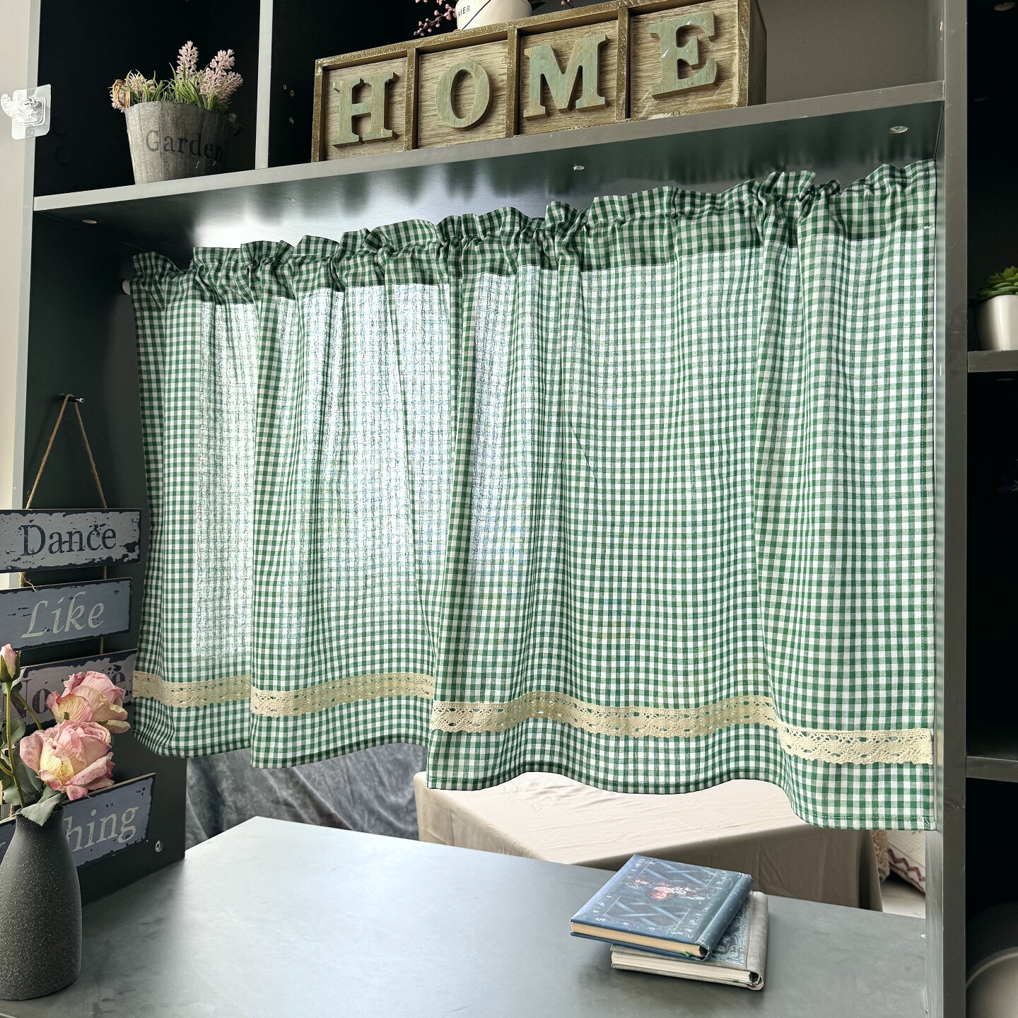 绿色小格子半帘窗帘门帘美式 乡村穿杆半截小窗帘咖啡帘柜帘遮挡帘