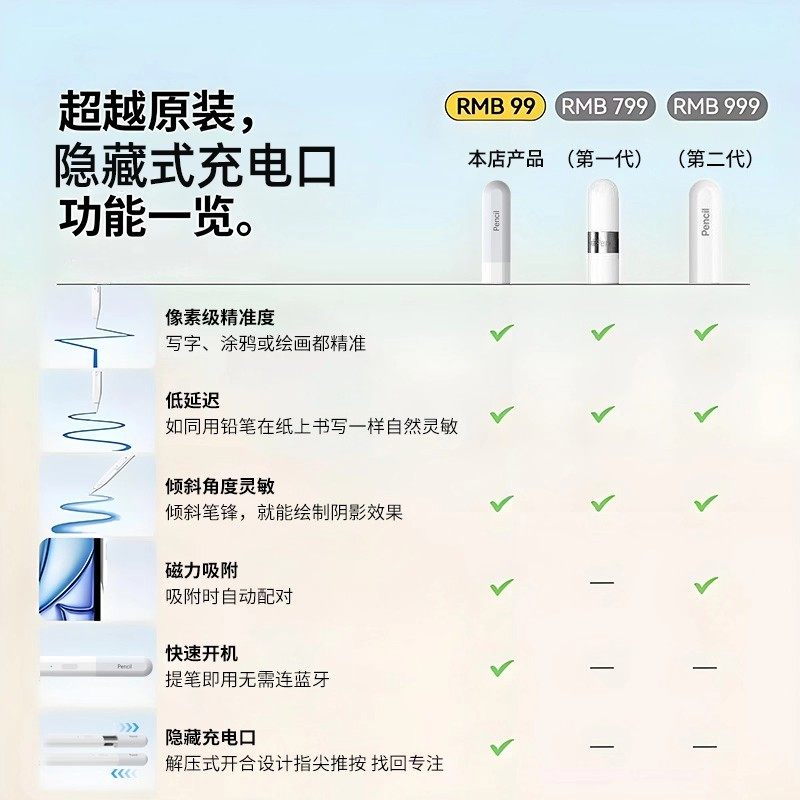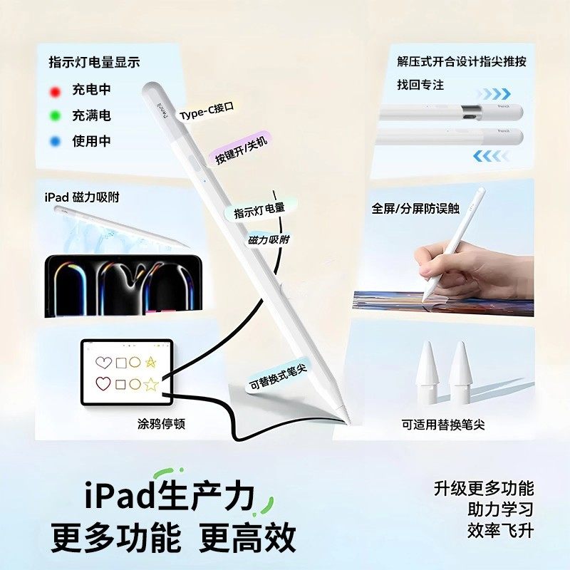 适用于apple pencil苹果电容笔iPadpro触屏笔applepencil二代air7平板6触控笔一代iPad11手写笔mini7绘画通用
