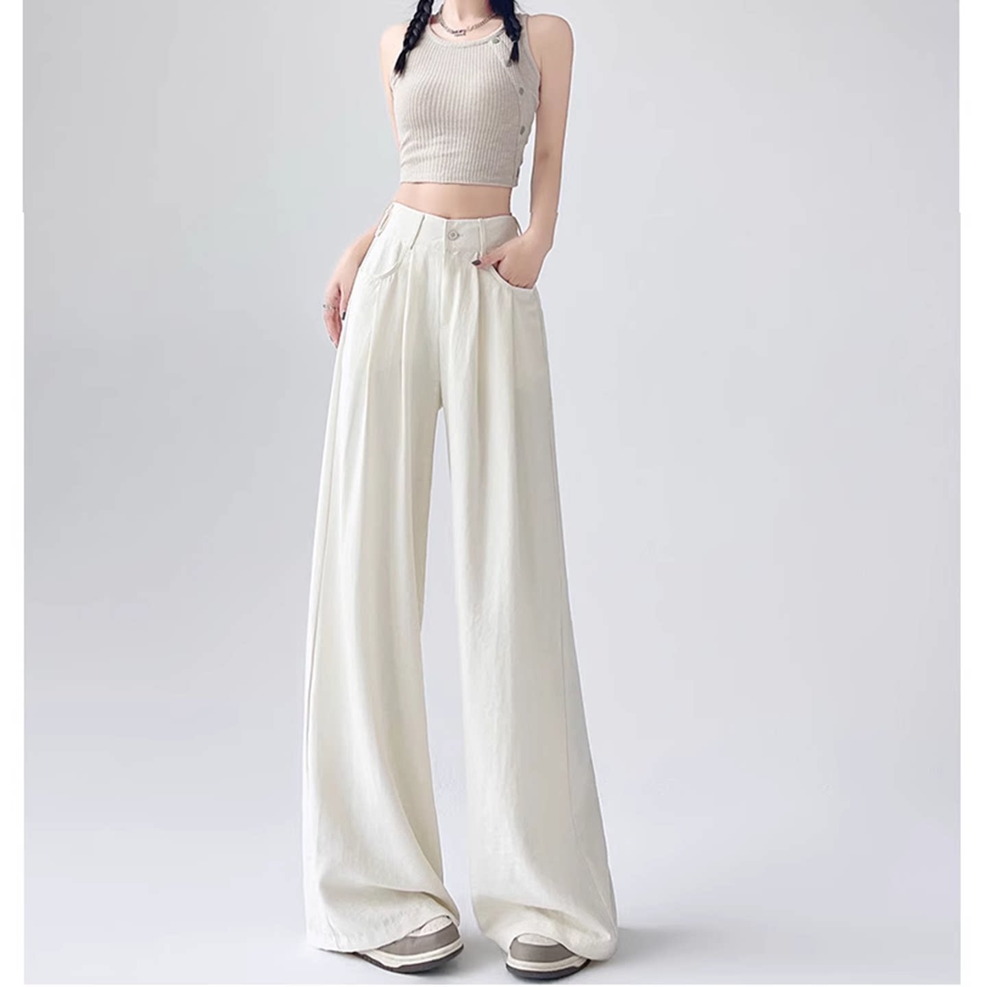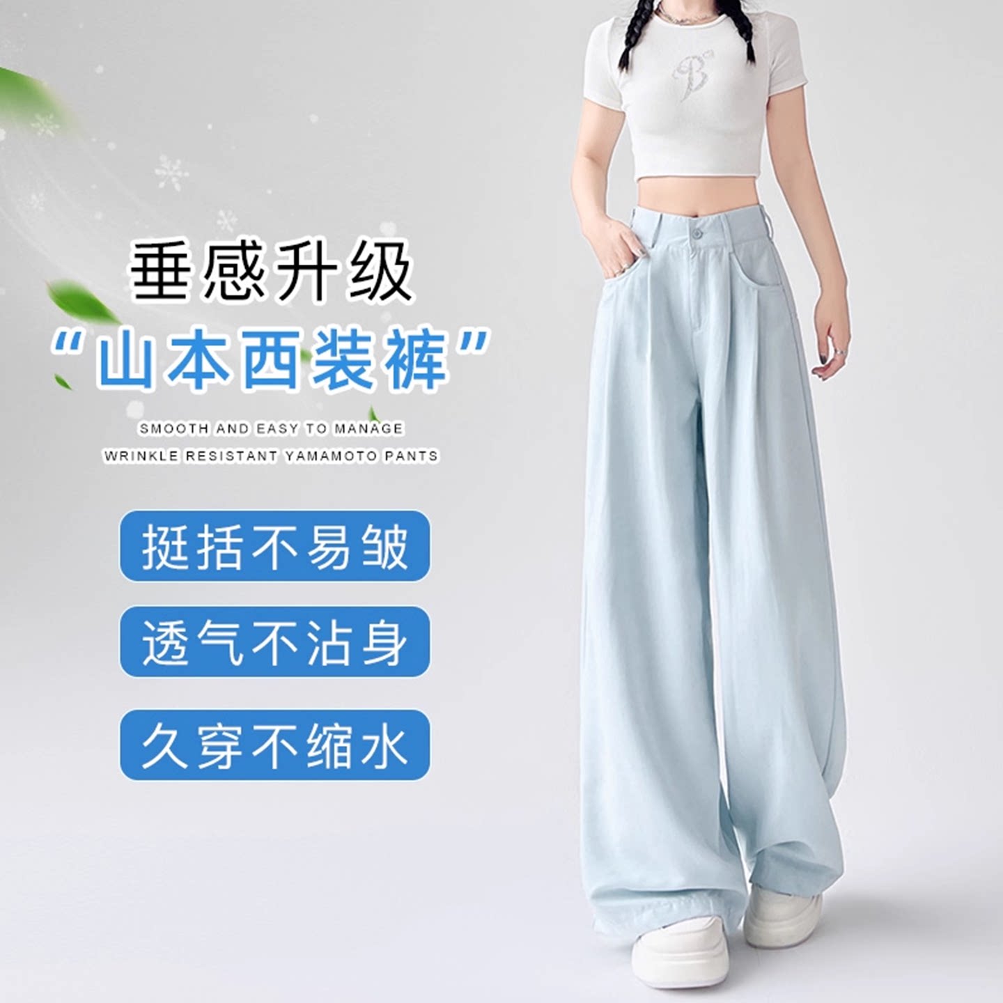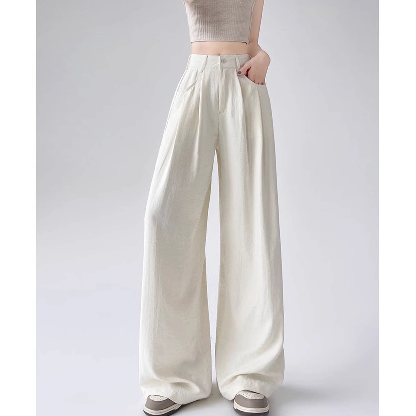 阔腿裤 垂感慵懒风奶芙西装 女2025夏薄款 175高个子超长冰丝山本裤