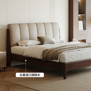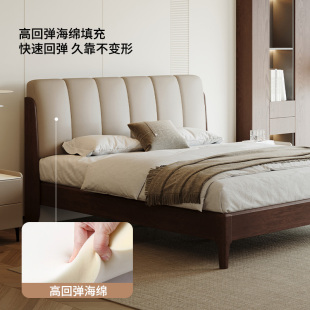 床全实木软包床现代简约家用卧室双人床1米5橡胶木床1米8单人床架