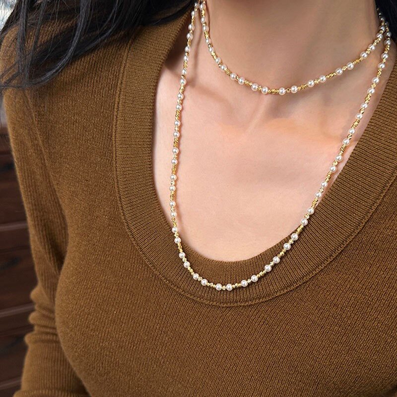 百搭颈链毛衣链 项链女轻奢高级感精致时尚 一款 多戴满天星珍珠长款