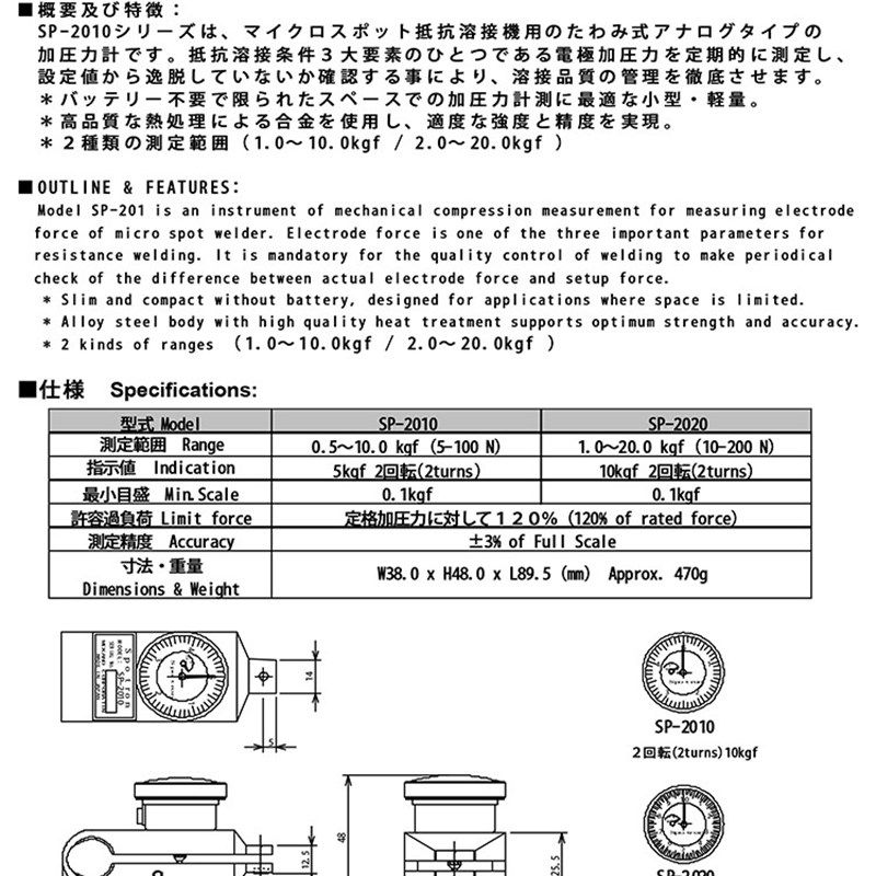 2020用于微型电焊机增压 进口日本SPOTRON焊接测力计SP 2010