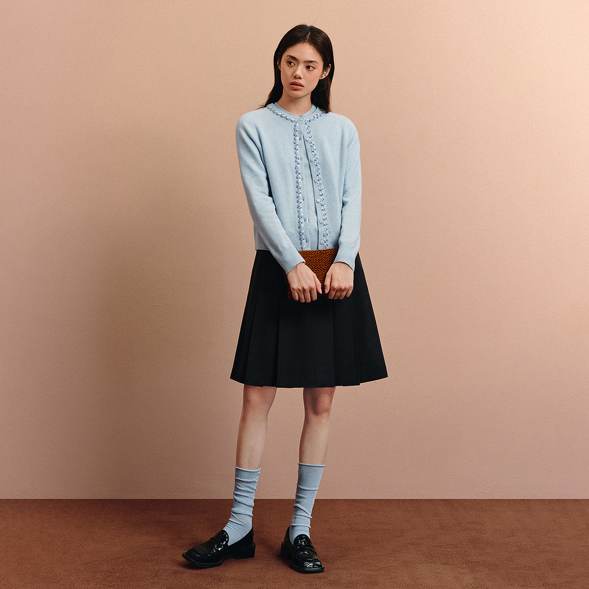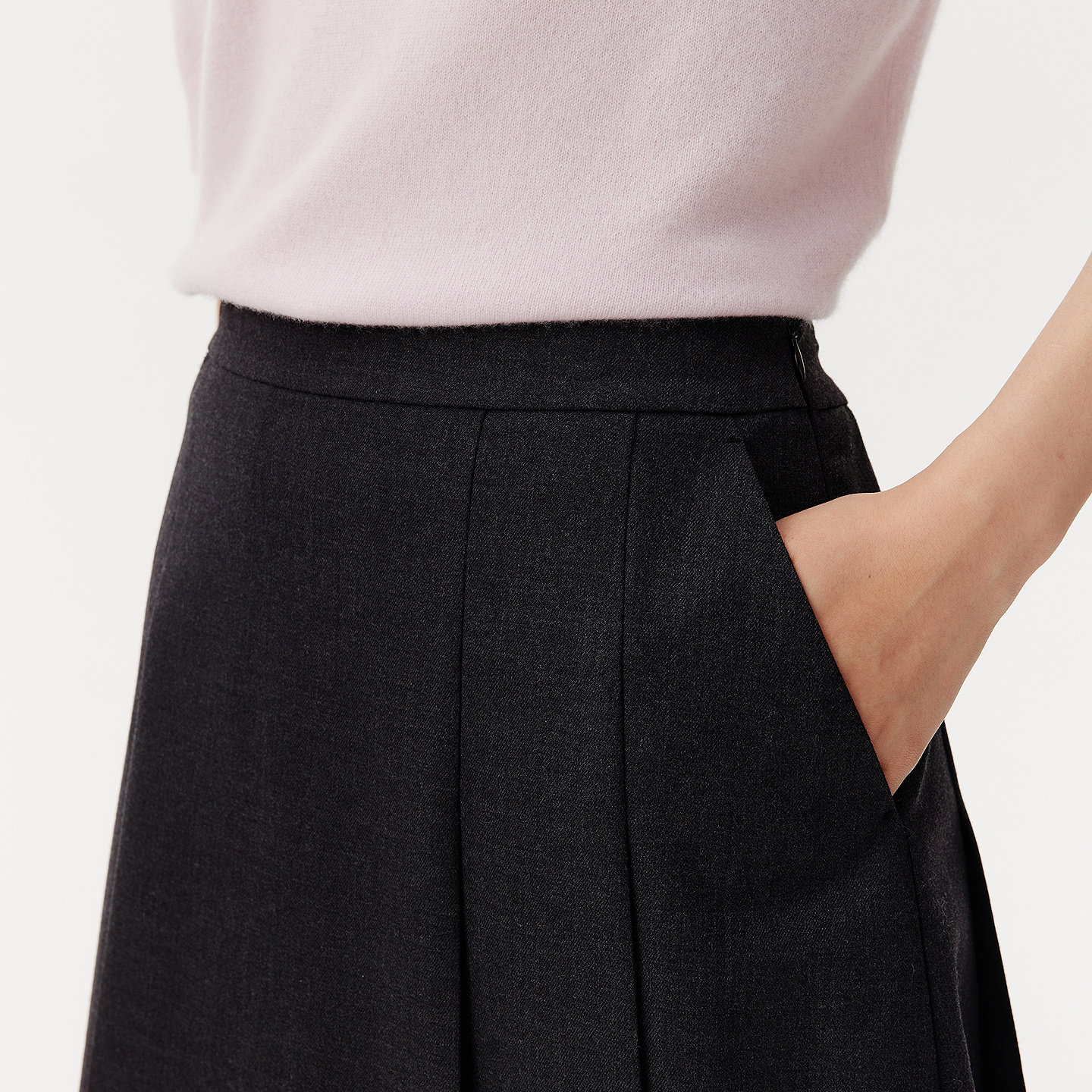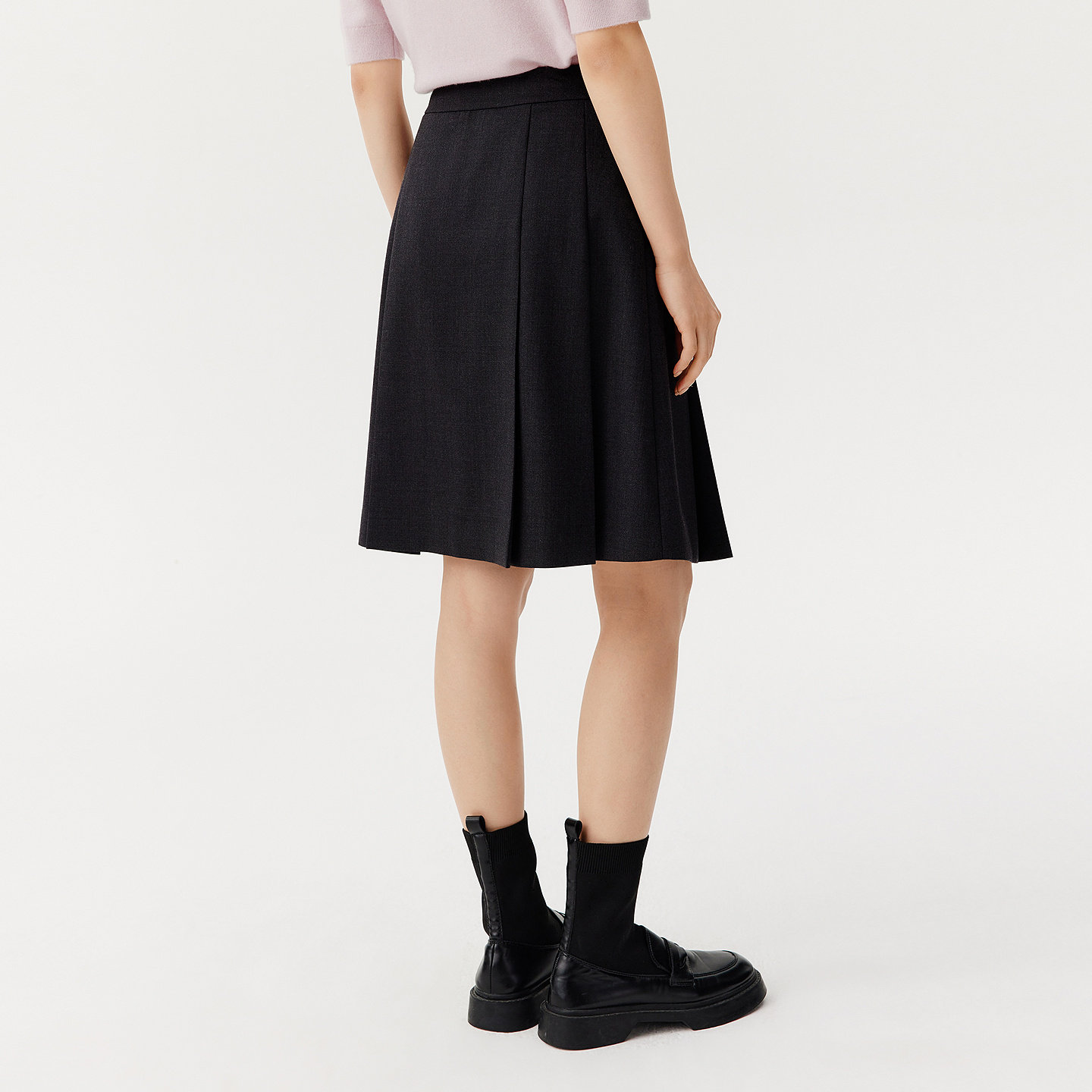 VGRASS25秋冬新款 精纺羊毛混纺重工压褶a字半身裙肌理垂挺百褶裙