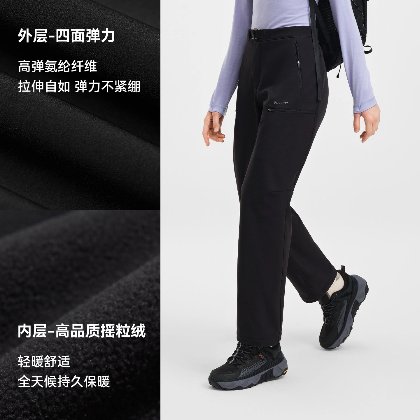 直筒休闲裤 伯希和软壳裤 耐磨徒步登山裤 高弹透气户外运动裤 女新款