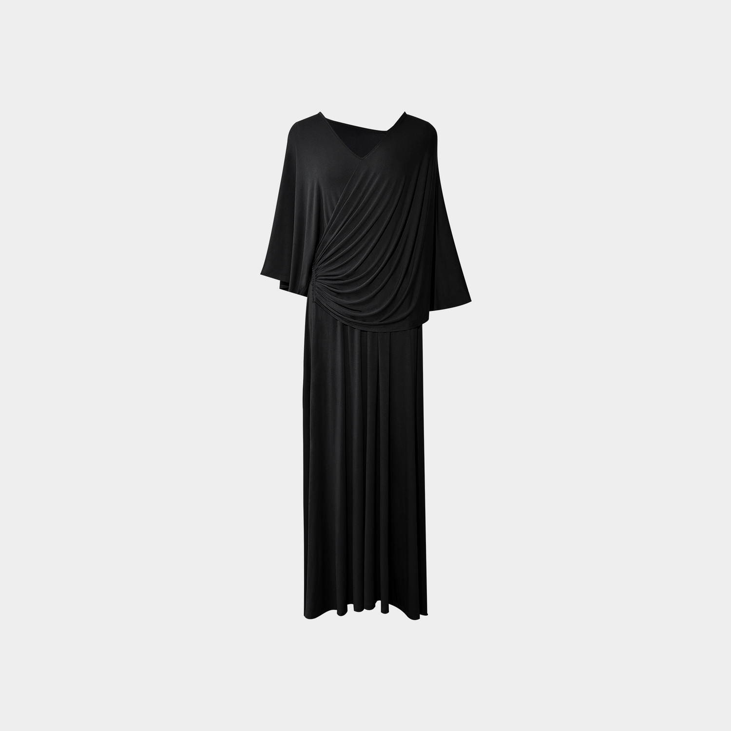 褶皱收腰A字裙长裙子 V领设计感连衣裙2025年新款 TU女装 缦影