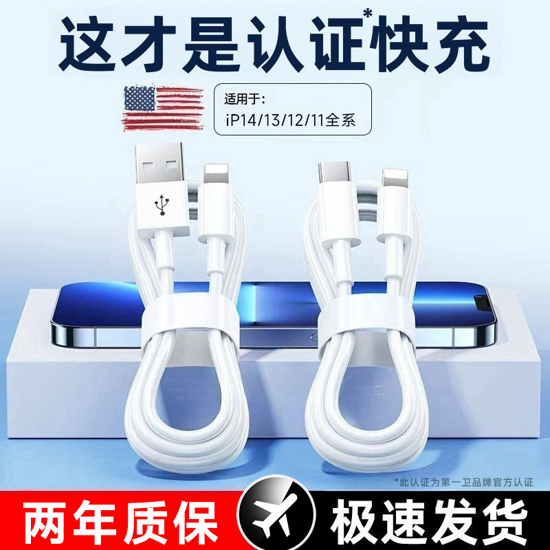 第一卫适用苹果14promax数据线13充电线11手机线快充PD线USB大头