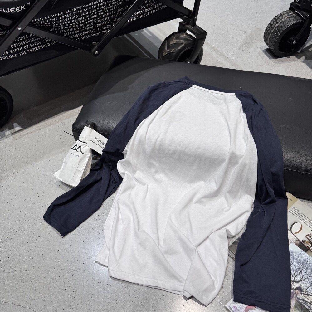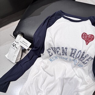 宽松防晒 大码 BOBO1972拼色设计字母印花百搭插肩长袖 t恤女中长款