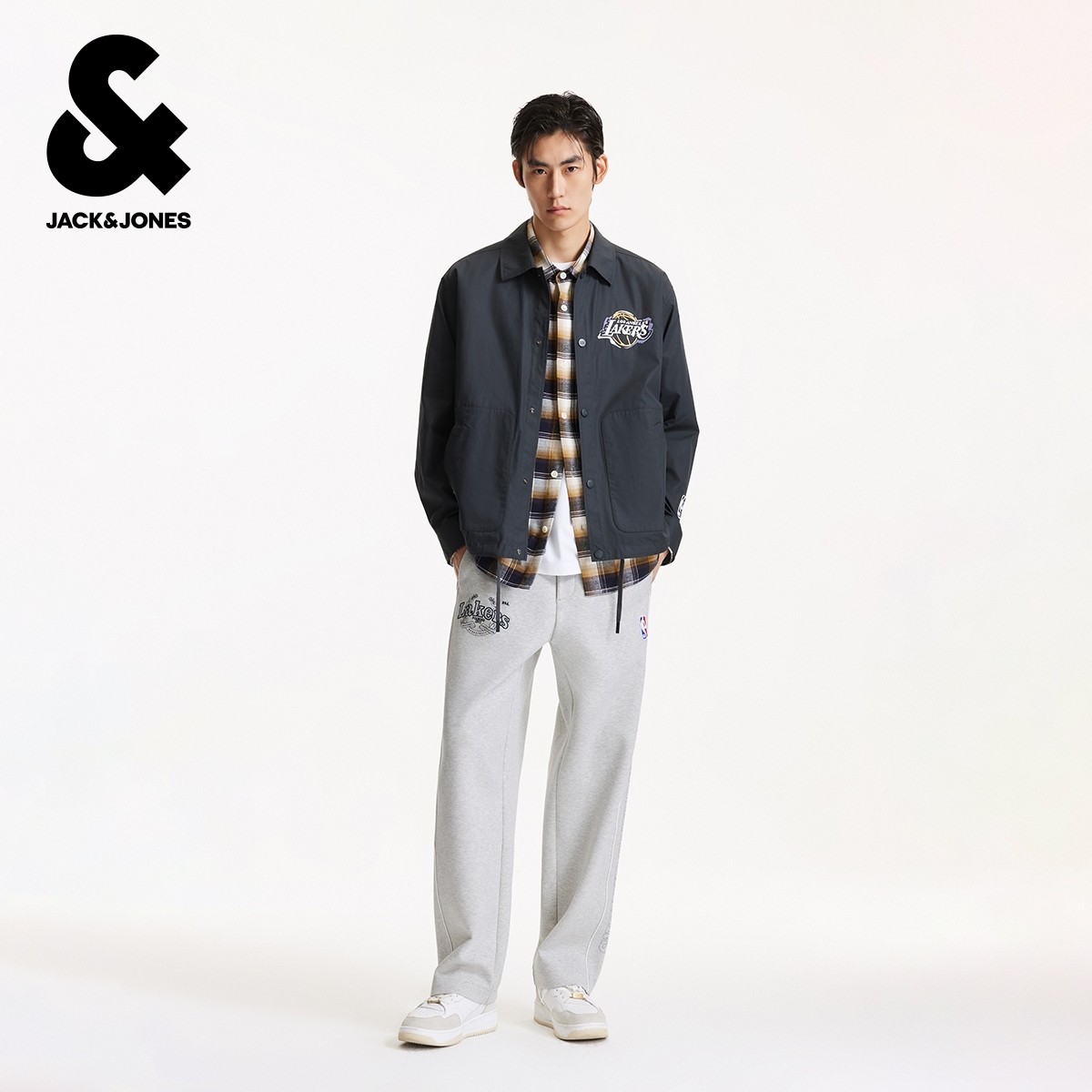 NBA联名款 长裤 秋季 字母印花拼接宽松直筒卫裤 子 新款 杰克琼斯男装