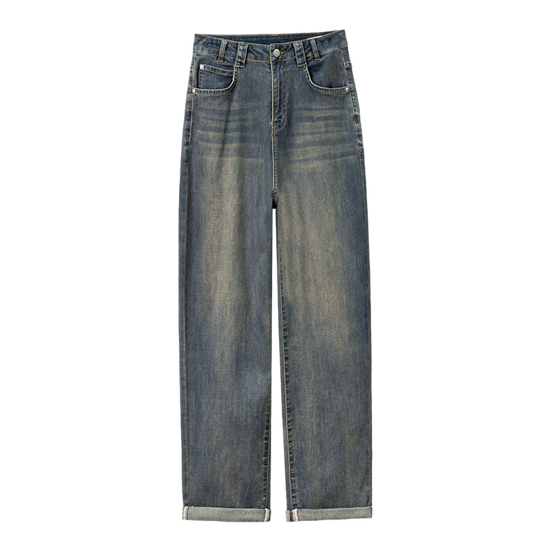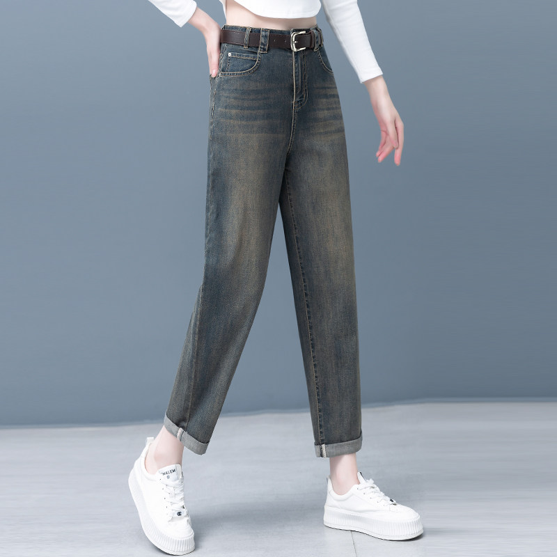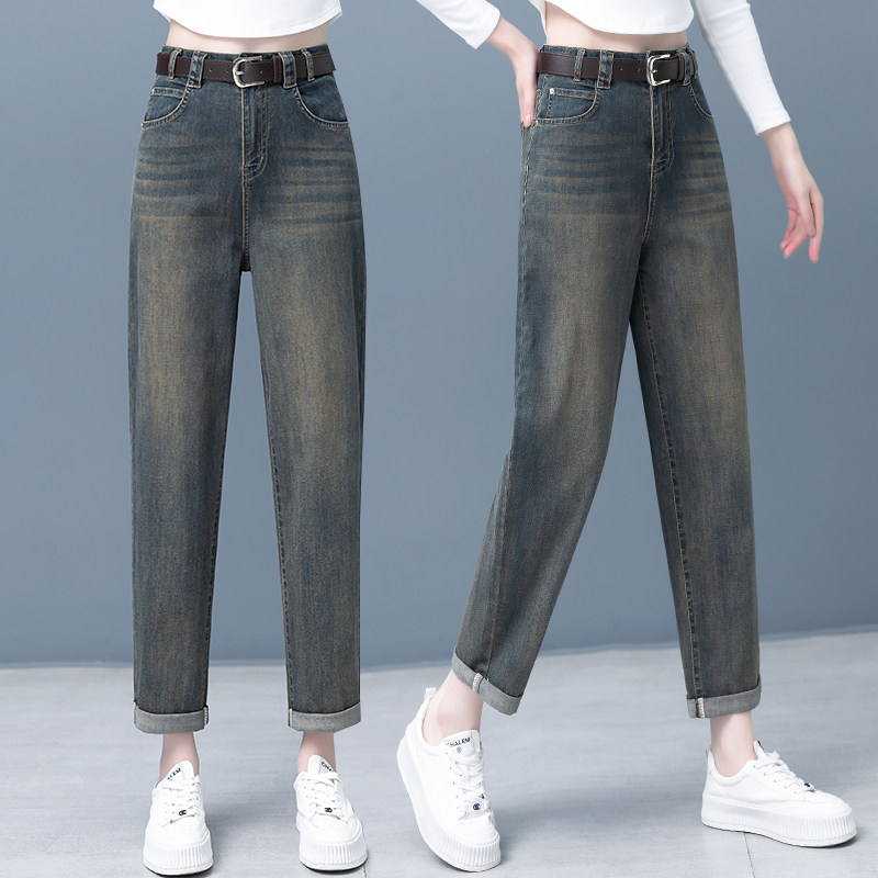 女2025秋季 显瘦烟管老爹裤 新款 高腰萝卜裤 子 韩版 水泥灰牛仔哈伦裤