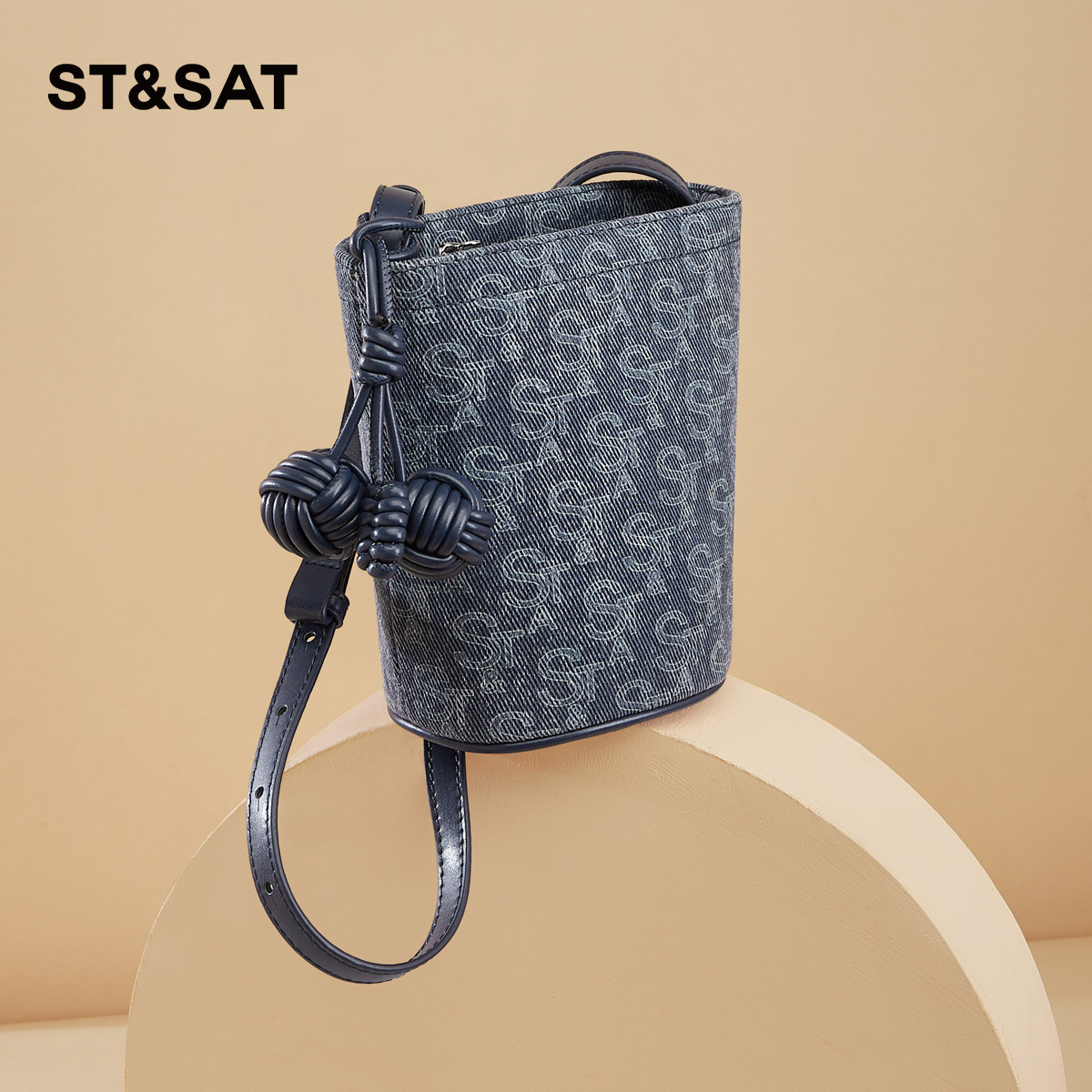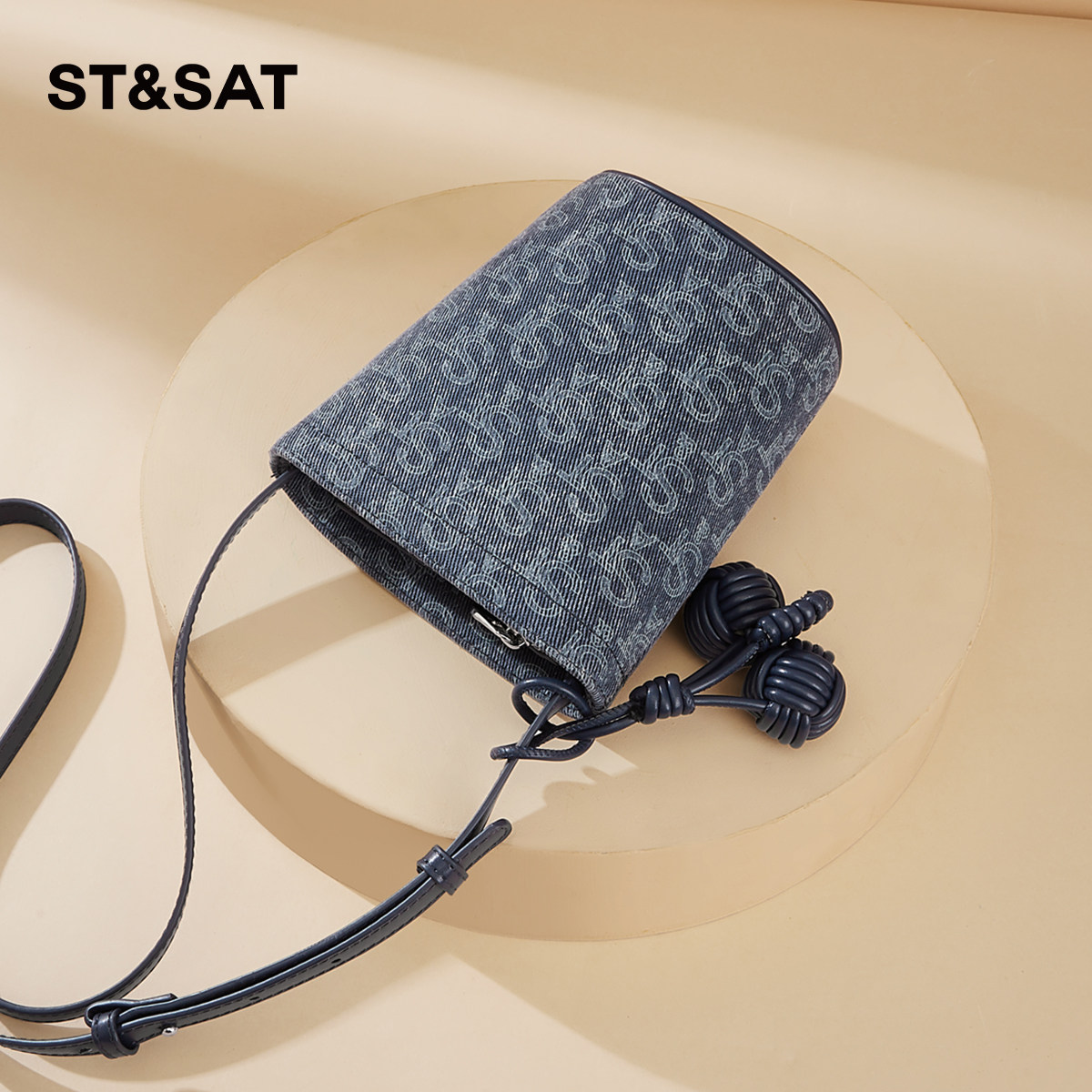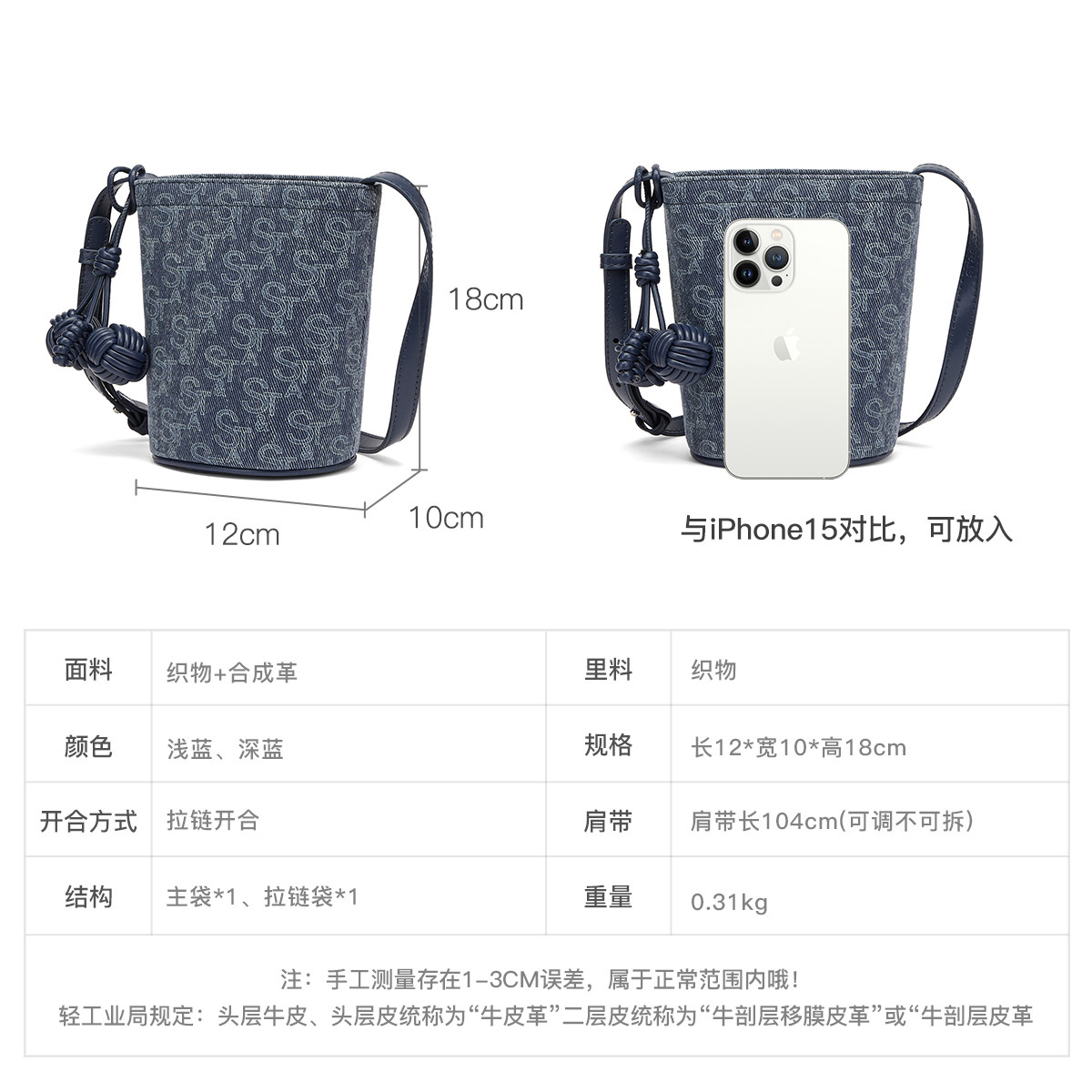 高级感通勤手机包 牛仔单肩斜挎包时尚 星期六水桶包包女式 2026新款