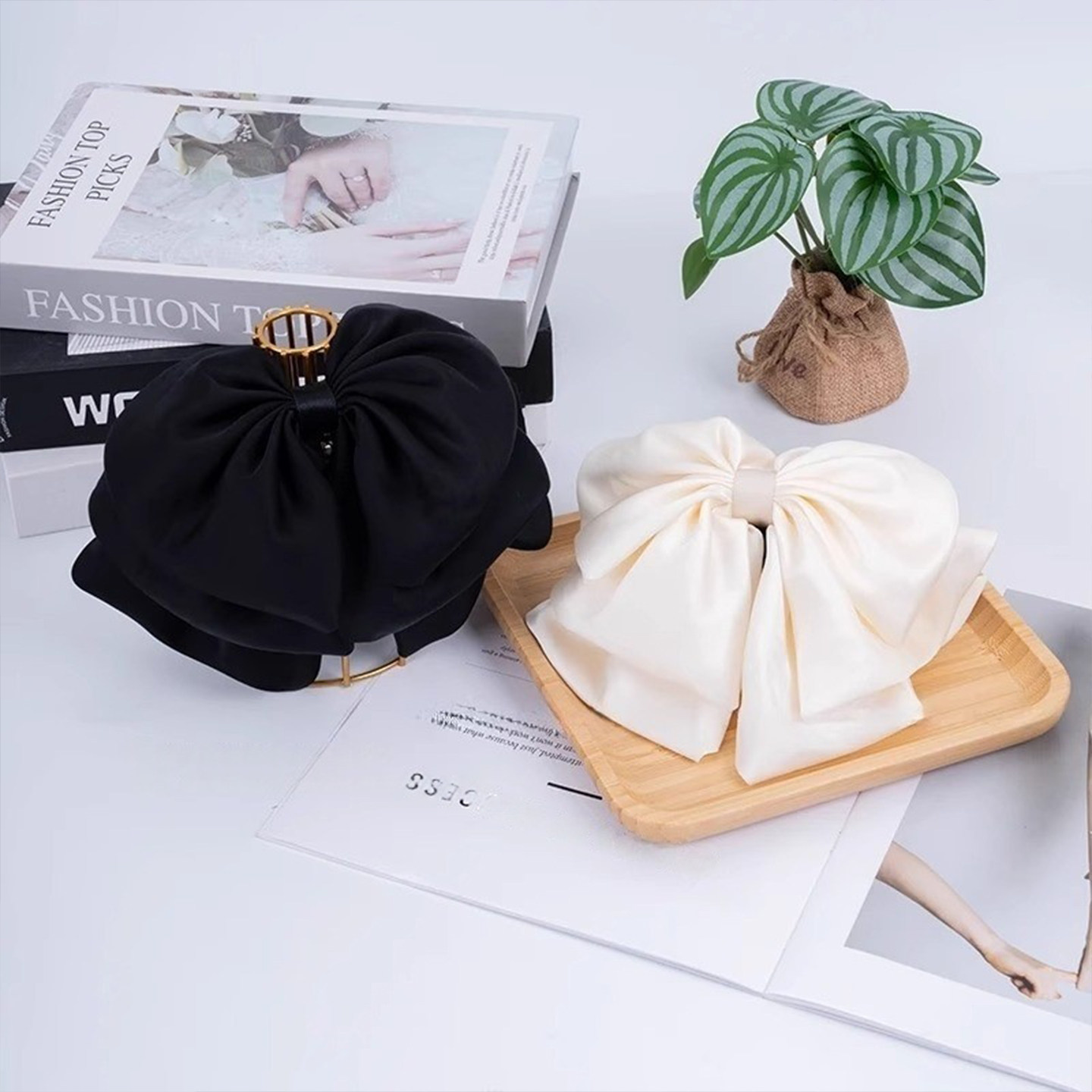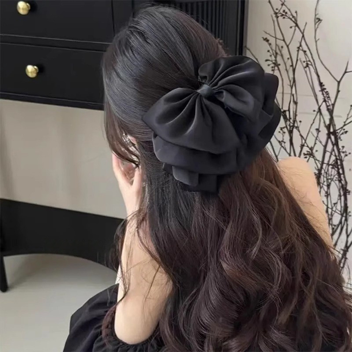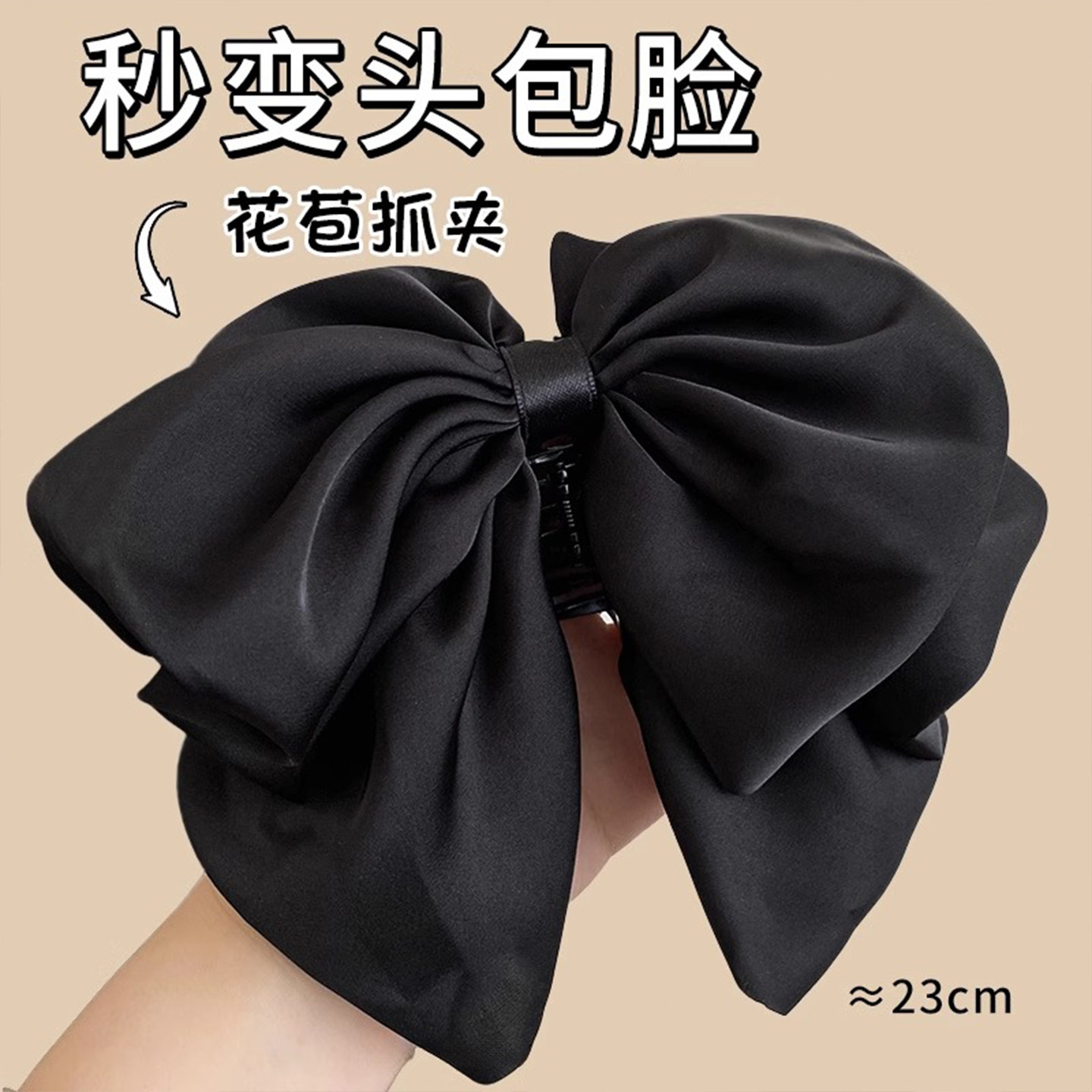 黑色缎面蝴蝶结抓夹女2025新款 高颅顶发夹饱满后脑勺马尾夹子头饰