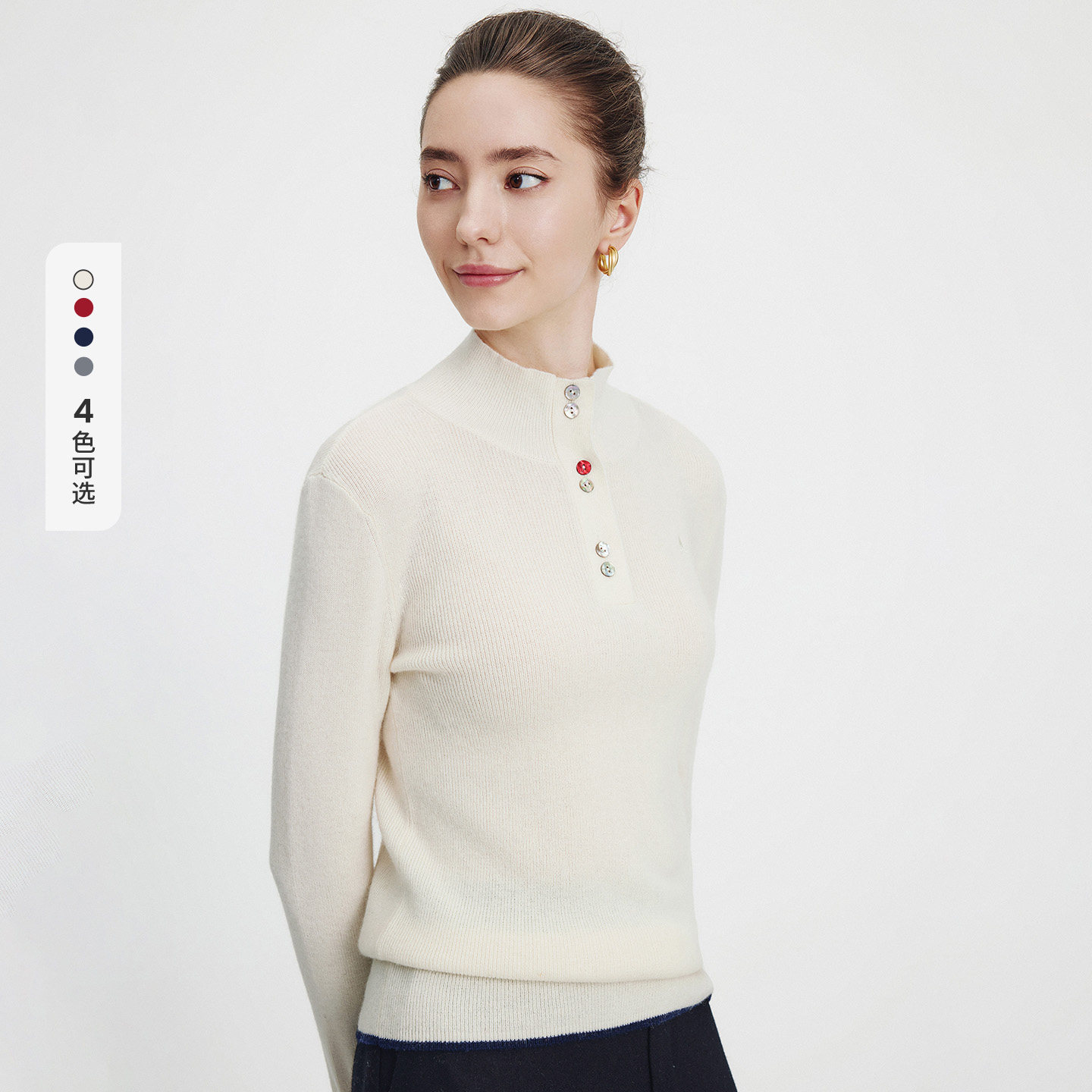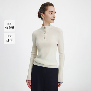 针织衫 白色修身 女2025秋冬新款 Navigare意大利小帆船高档羊绒衫