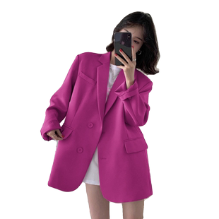 玫红小西装 小个子休闲高级感上衣西服 外套女oversize2025春秋新款