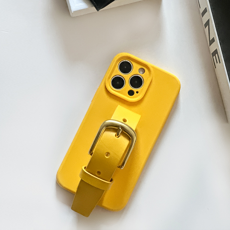 向日葵黄iphone17promax经典 15系列原创设计保护套小众ins风手机保护壳 铜扣腕带手机壳精孔苹果16