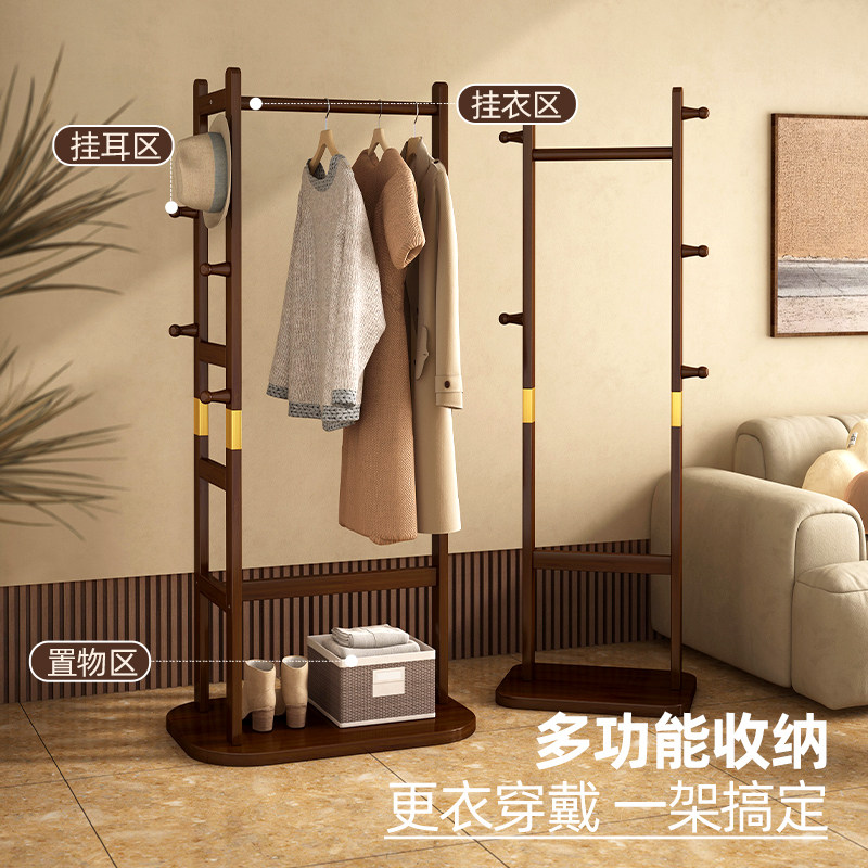 实木衣帽架落地挂衣架客厅办公室房间床头宿舍家用立式 挂衣服架子