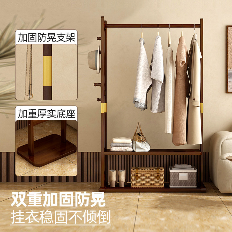 实木挂衣架落地卧室家用衣帽架中式 架子 房间小型简易床边挂衣服