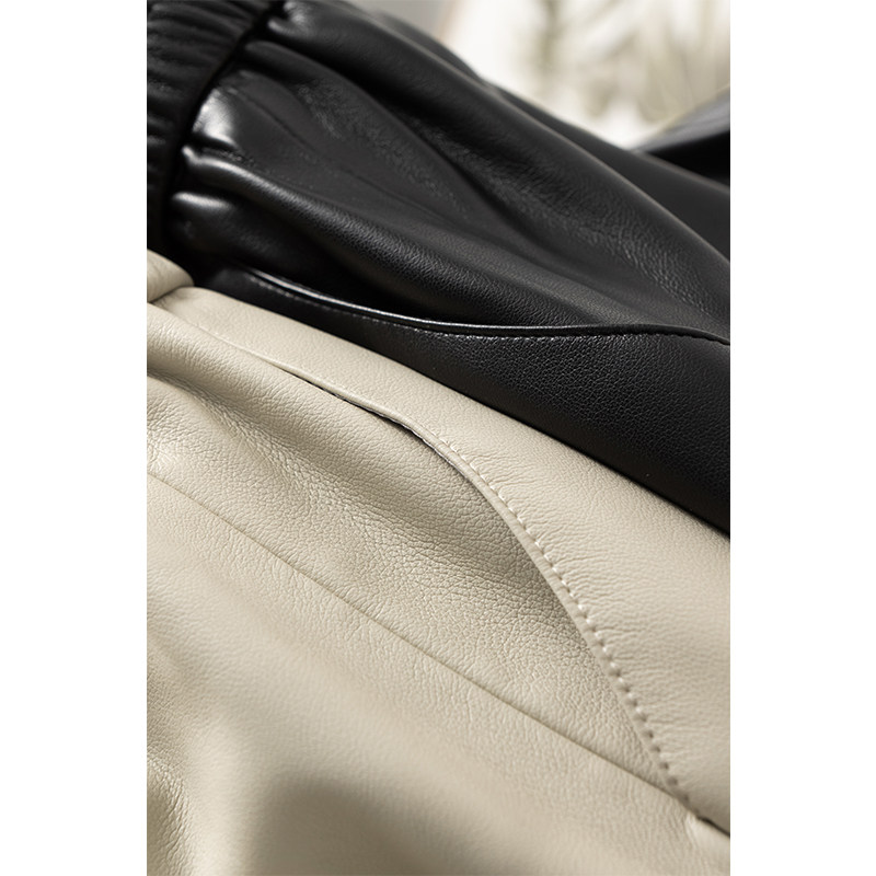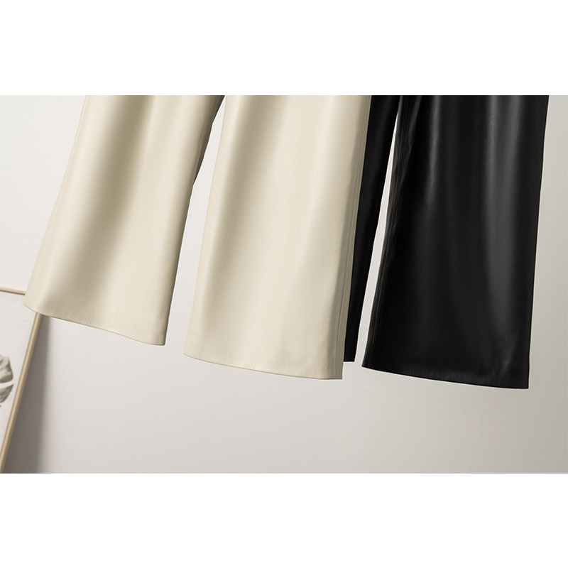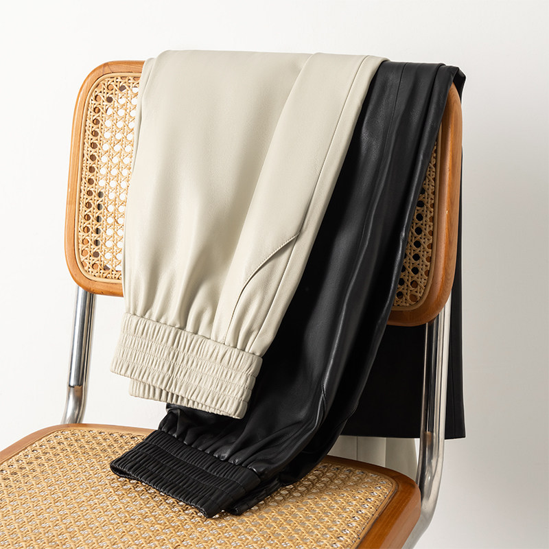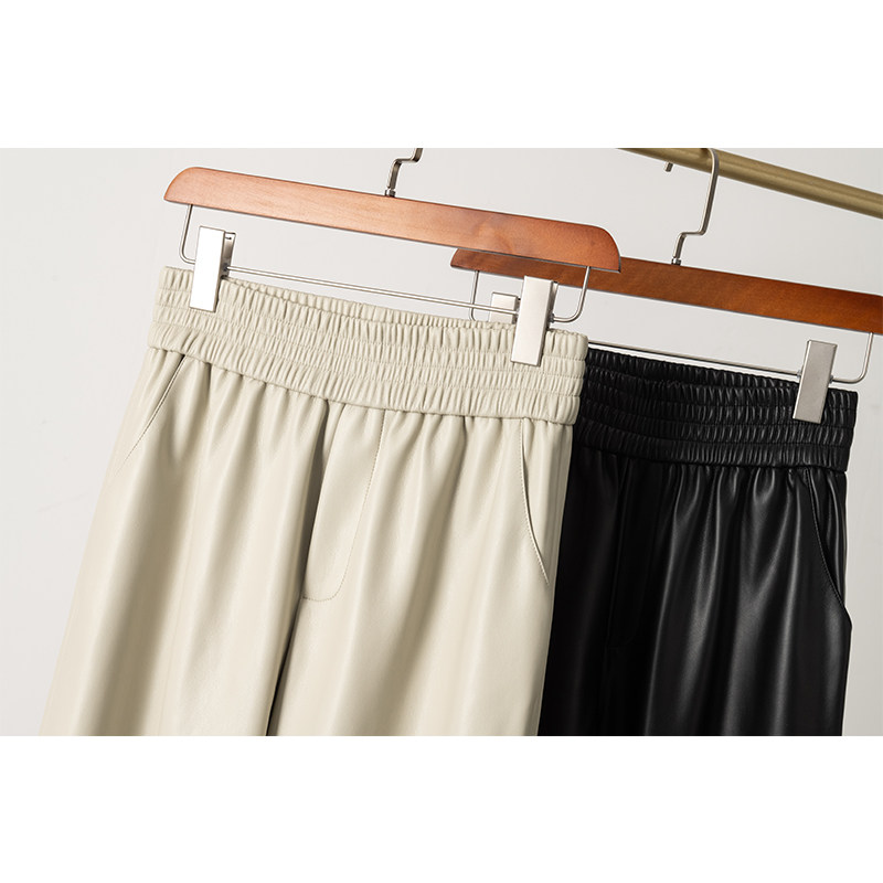 休闲裤 欧洲站2025秋冬新款 松紧高腰宽松阔腿裤 真皮皮裤 绵羊皮皮裤