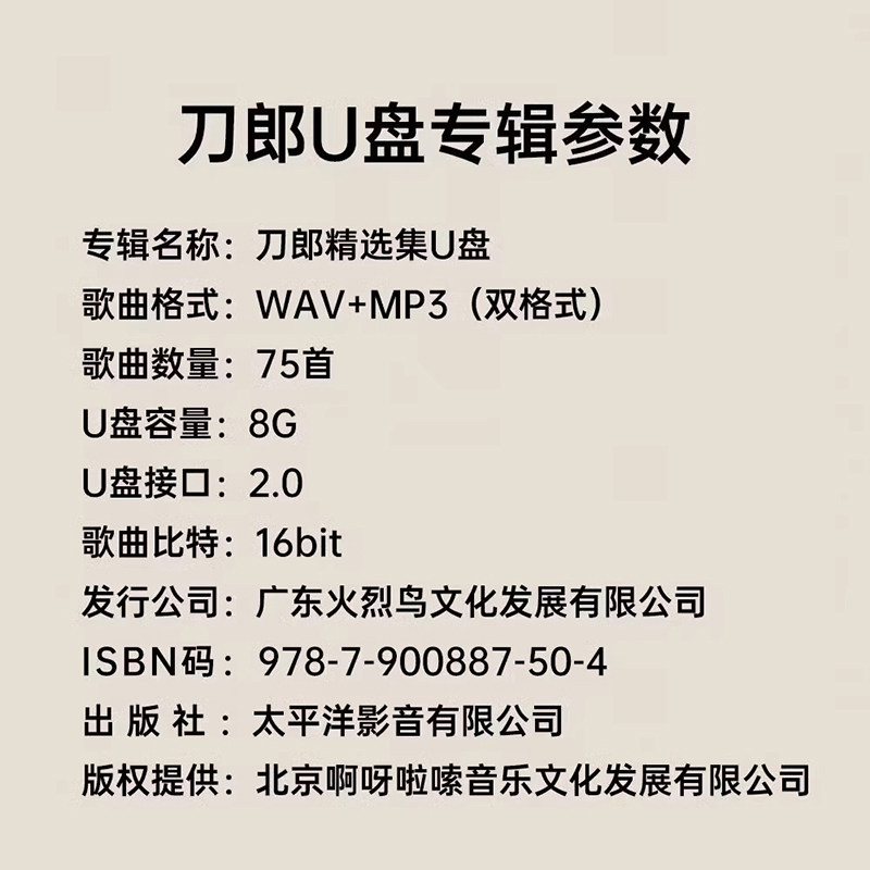 刀郎精选集U盘 2023新专辑优盘车载音乐75首MP3歌曲WAV无损音质