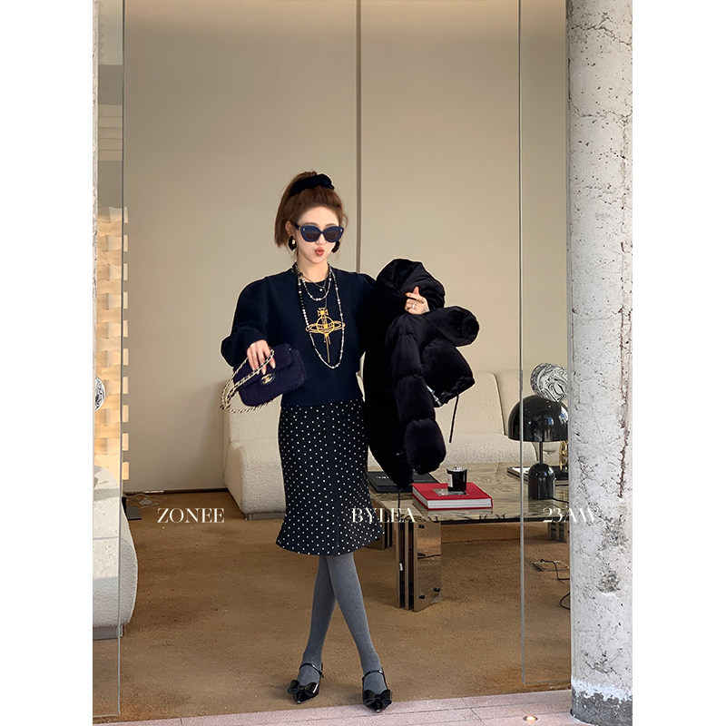 灯芯绒半裙 小马刺绣圆领毛衣针织衫 BANANA CICI2025年秋冬新款