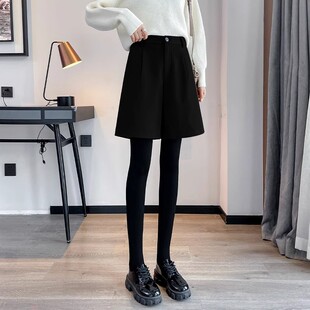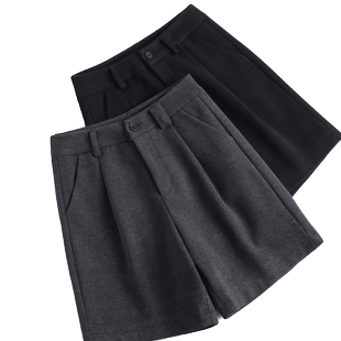 女2025新款 外穿靴裤 秋冬休闲中裤 五分裤 高腰显瘦阔腿西装 毛呢短裤