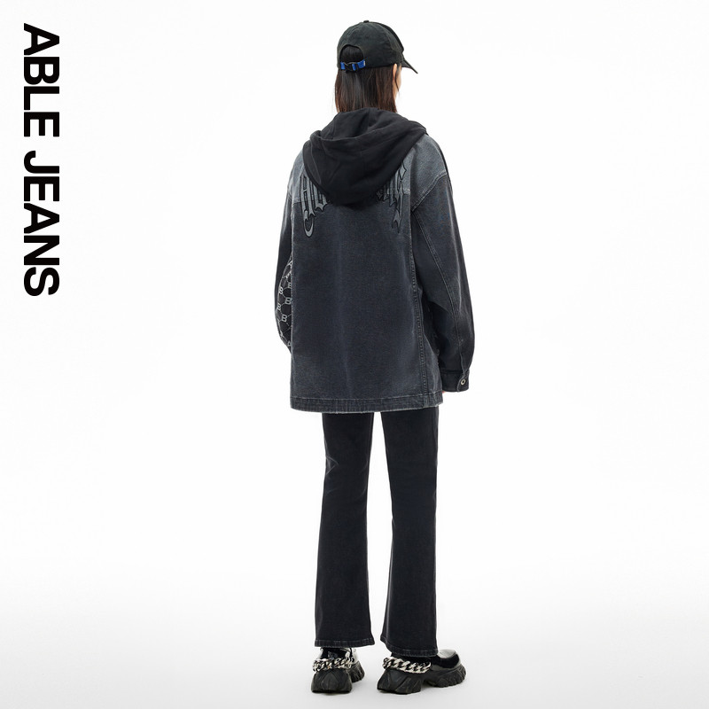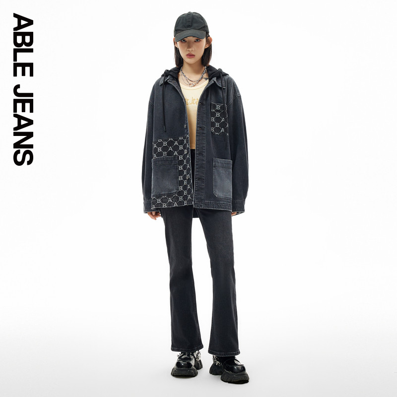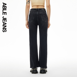 JEANS 直筒微喇叭牛仔裤 直筒喇叭裤 女士水洗经典 宽松 新款 ABLE