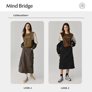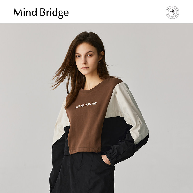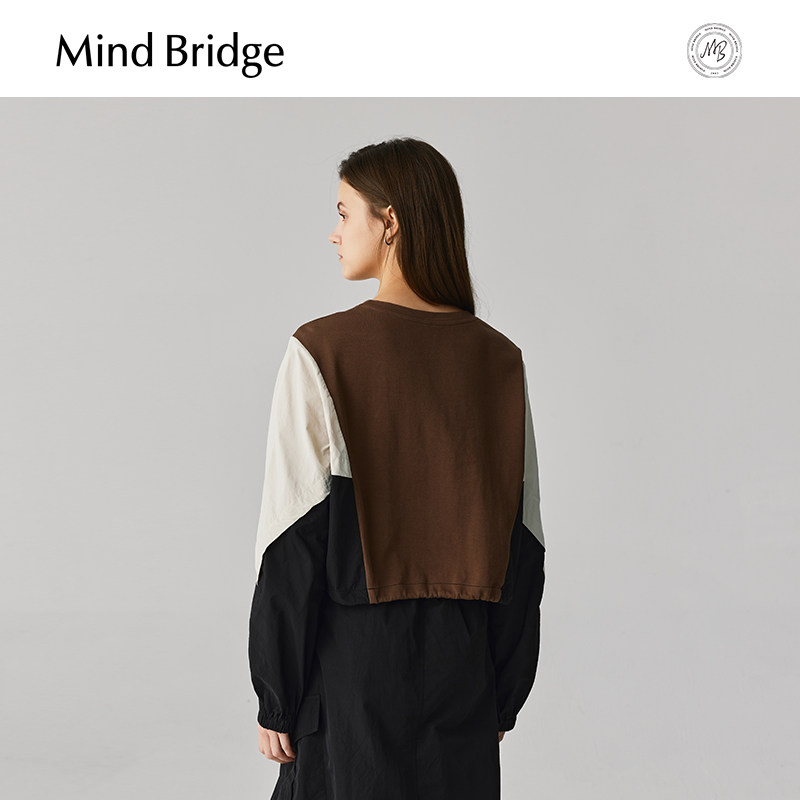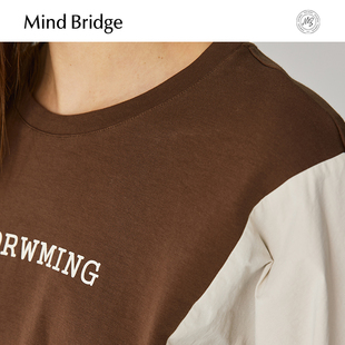 T恤 女士休闲长袖 Mind Bridge2025年设计感圆领正肩拼接卫衣秋季