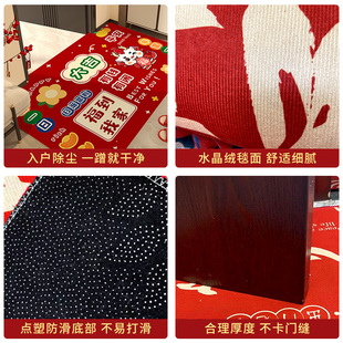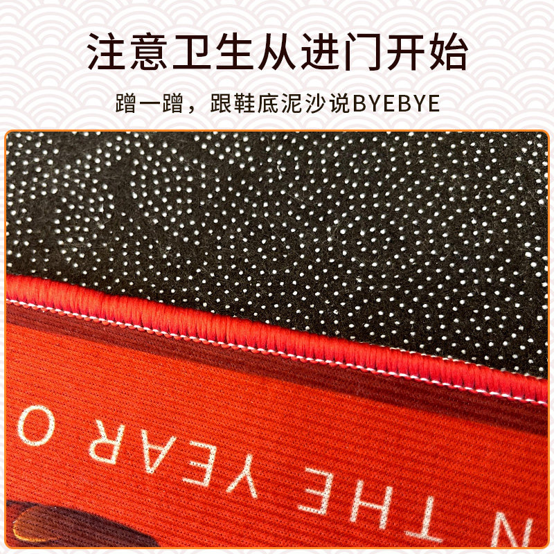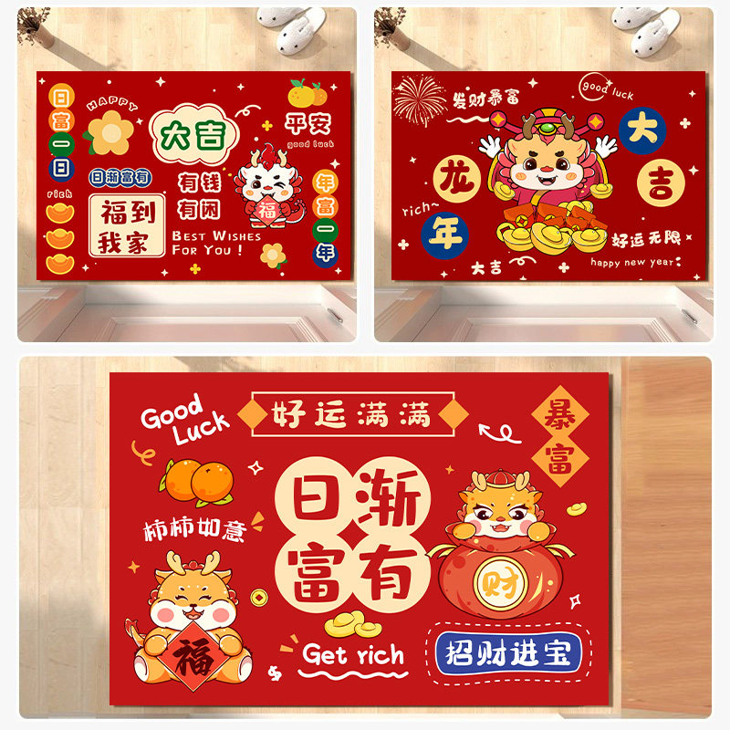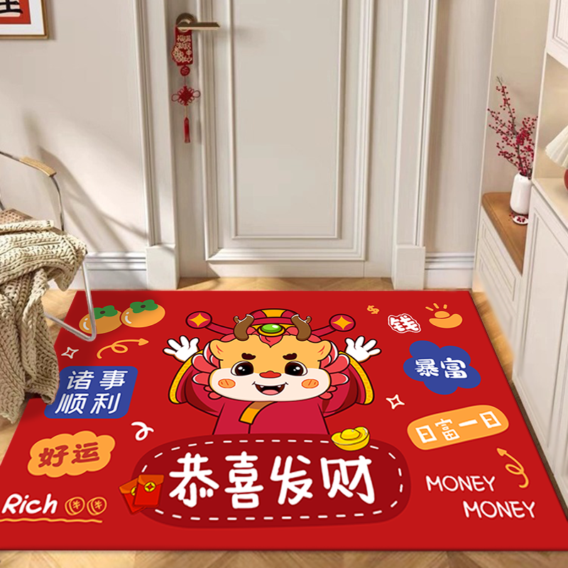 龙年地垫入户门垫卡通红色喜庆2024新年进门地毯门口脚垫耐脏防滑