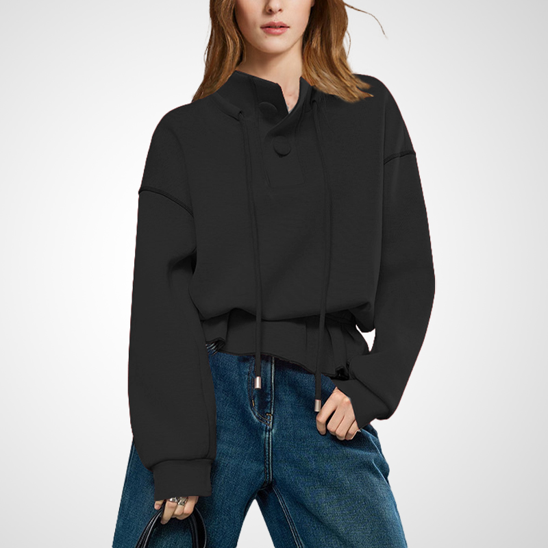 厚上衣内搭绒衫 2025年秋冬新款 半高领加绒卫衣女套头无帽宽松长袖