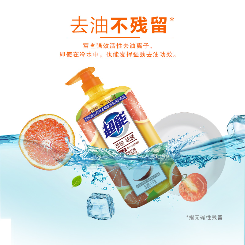 超能洗洁精家用食品级白桃西柚洗碗液大瓶去油洗涤灵去异味洗涤剂