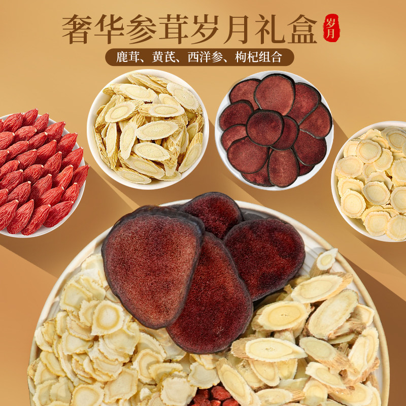 巧天然新西兰鹿茸西洋参四拼礼盒送父母长辈煲汤泡酒 滋补礼盒