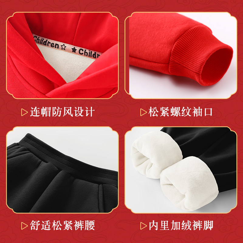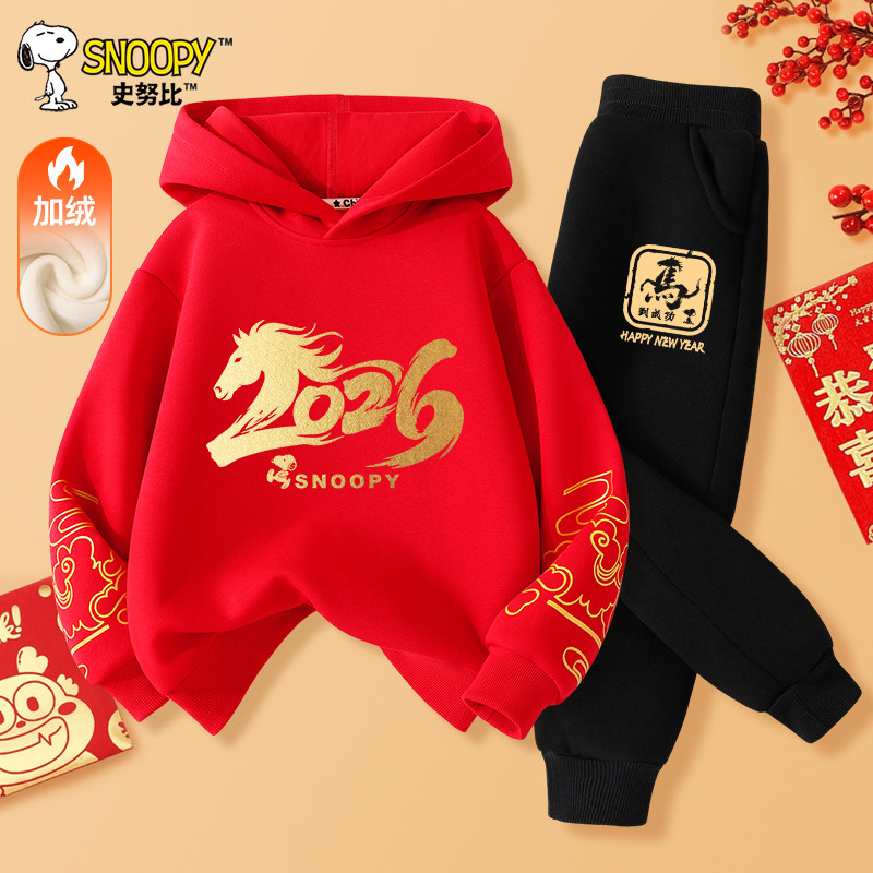 史努比童装 男童卫衣马年本命年衣服儿童红色上衣男孩新年加绒套装