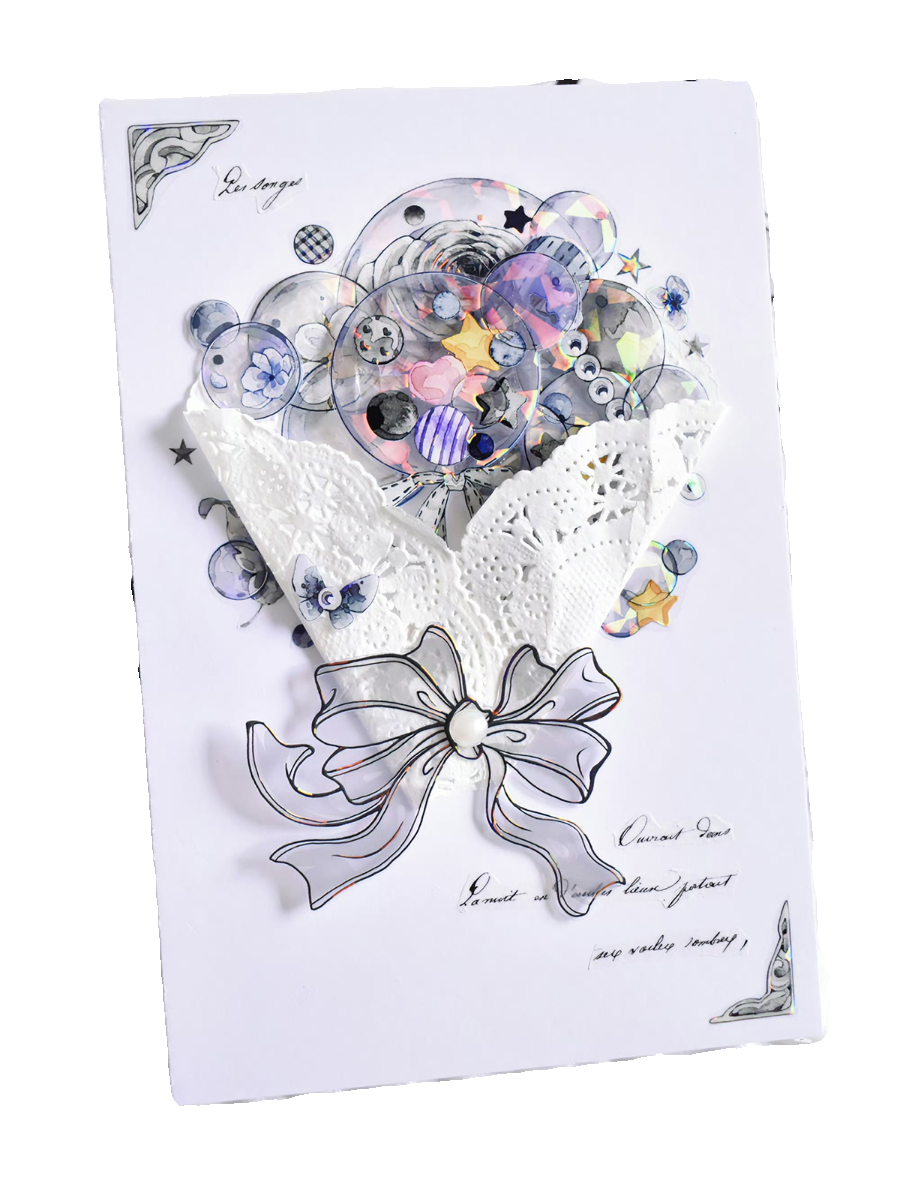 半透明咕卡谷美胶带特材白茶结语流麻wines野葵花朵手帐素材分装