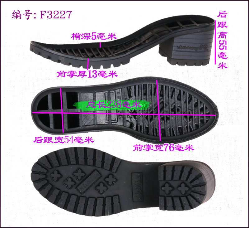 材料 底材料手工做皮鞋 3227 底防滑耐磨鞋 潮流女士中跟橡胶鞋