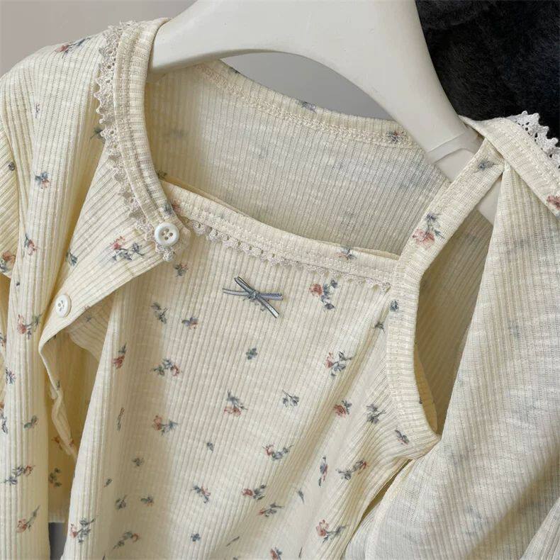 新款 洋气春装 2026女宝宝甜美背心两件套百搭 吊带套装 女童碎花开衫