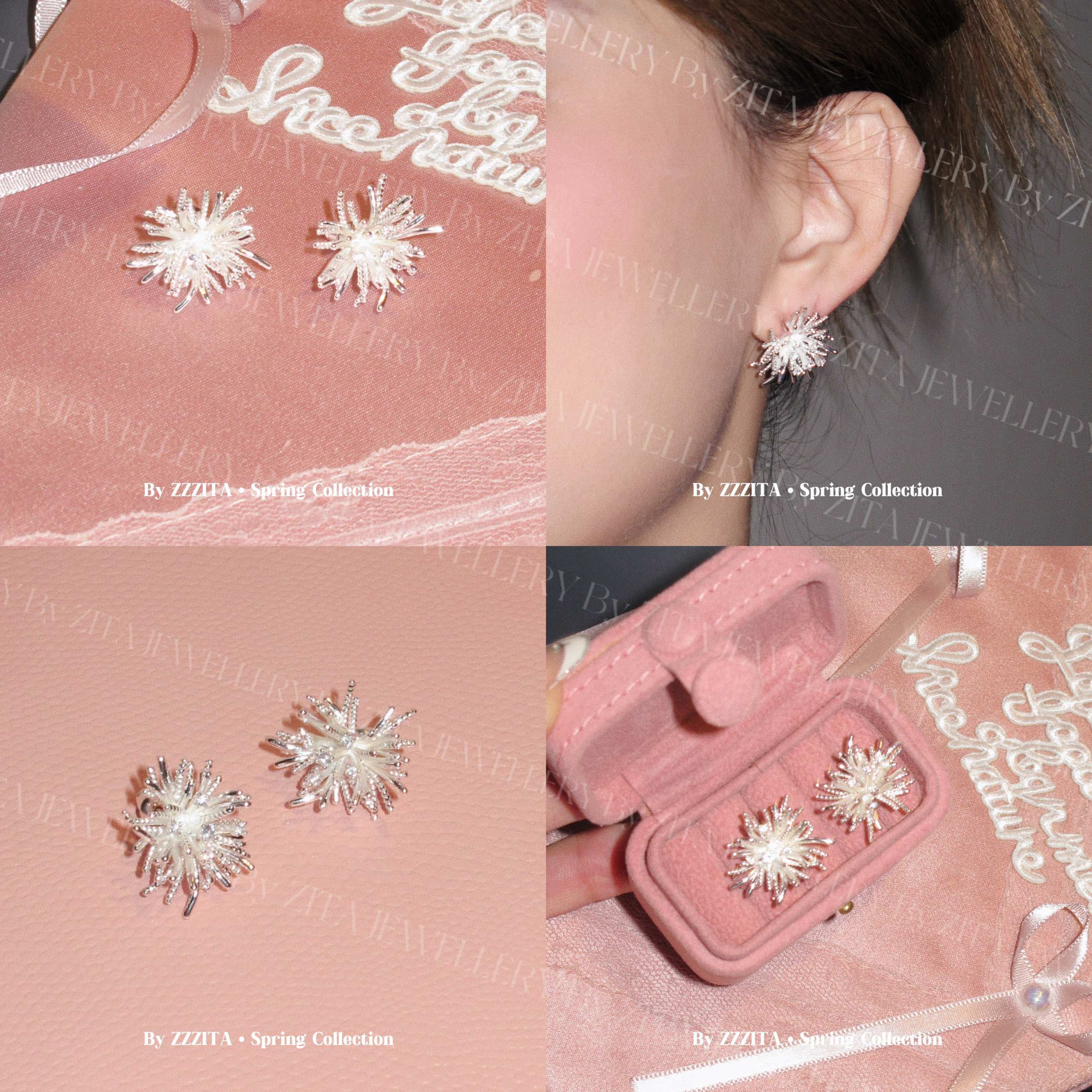 ZZZITA Firework·小烟花~立体手工编织小众设计感耳钉 Silver
