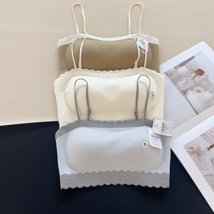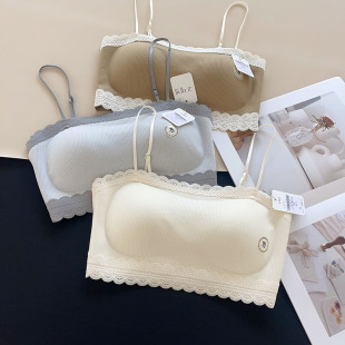 古妃美背云感棉蕾丝内衣一字领抹胸女固定杯聚拢文胸无痕裹胸背心