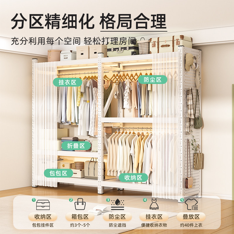 家用货架衣架开放式 架衣帽收纳架 蝴蝶扣简易衣橱出租房卧室钢制鞋