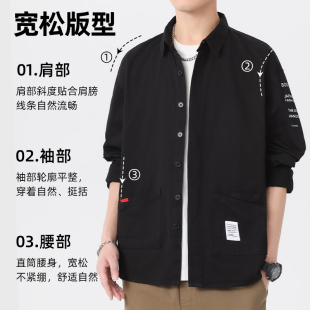 外套男春季 男装 新款 宽松休闲纯棉衬衣胖子加肥加大特大码 长袖 衬衫