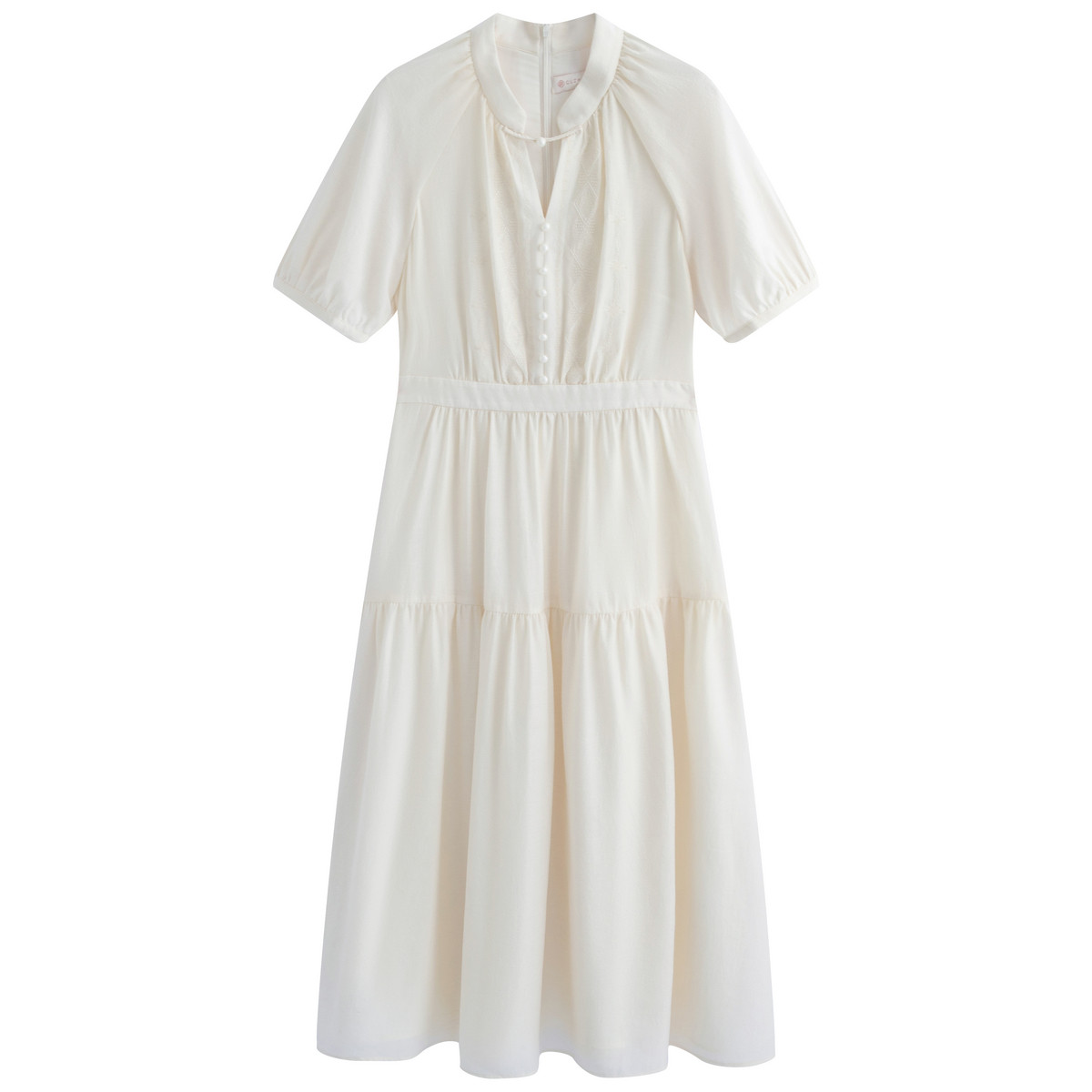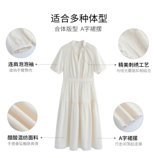 刺绣立领收腰显瘦中长短袖 气质新中式 连衣裙女 新款 固执夏季