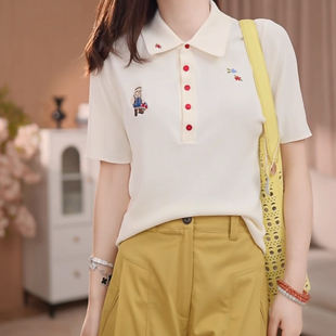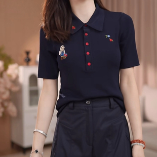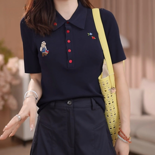 休闲百搭显瘦POLO衫 新款 上衣 T恤女2025夏季 卡通小熊刺绣翻领短袖