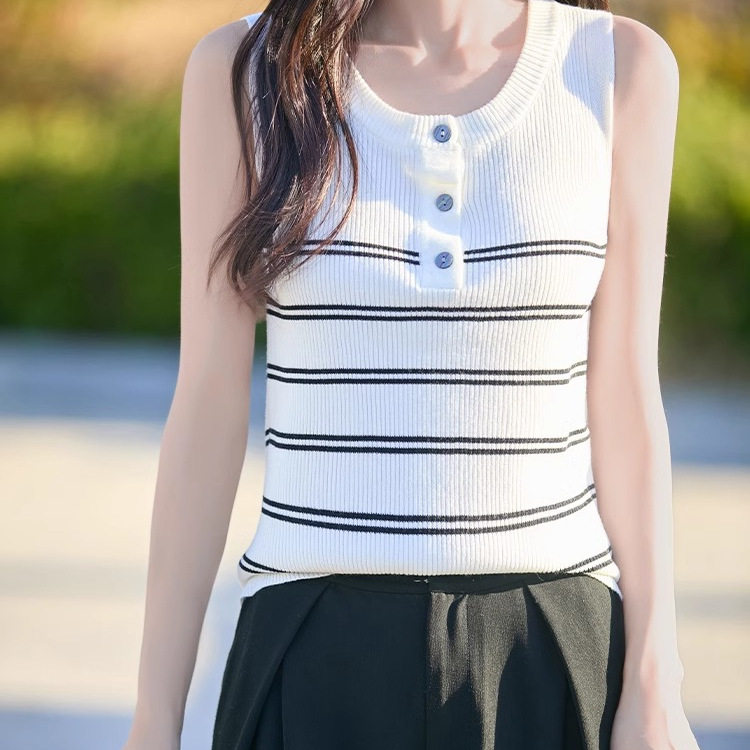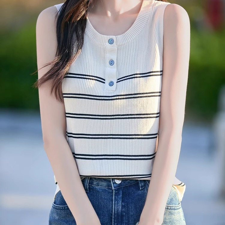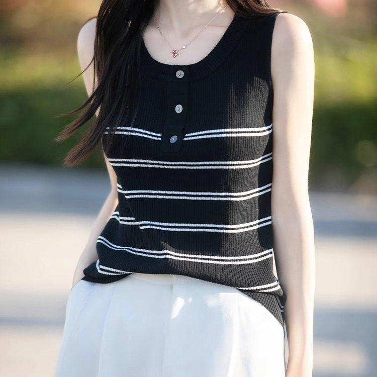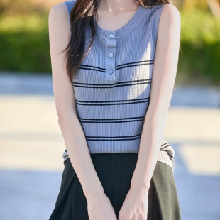 设计感冰丝条纹针织背心女夏季 吊带上衣 2025外穿减龄宽松遮肉无袖