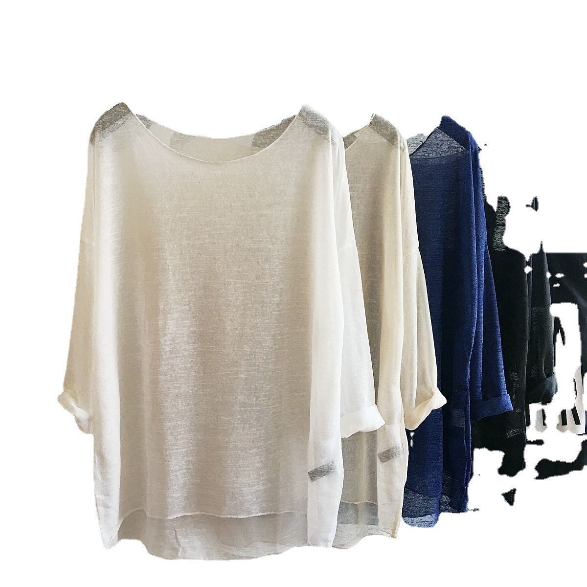 舞蹈服上衣长袖 大圆领透视t恤防晒衣女夏季 网纱针织超薄宽松罩衫