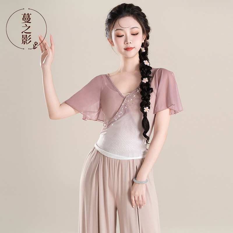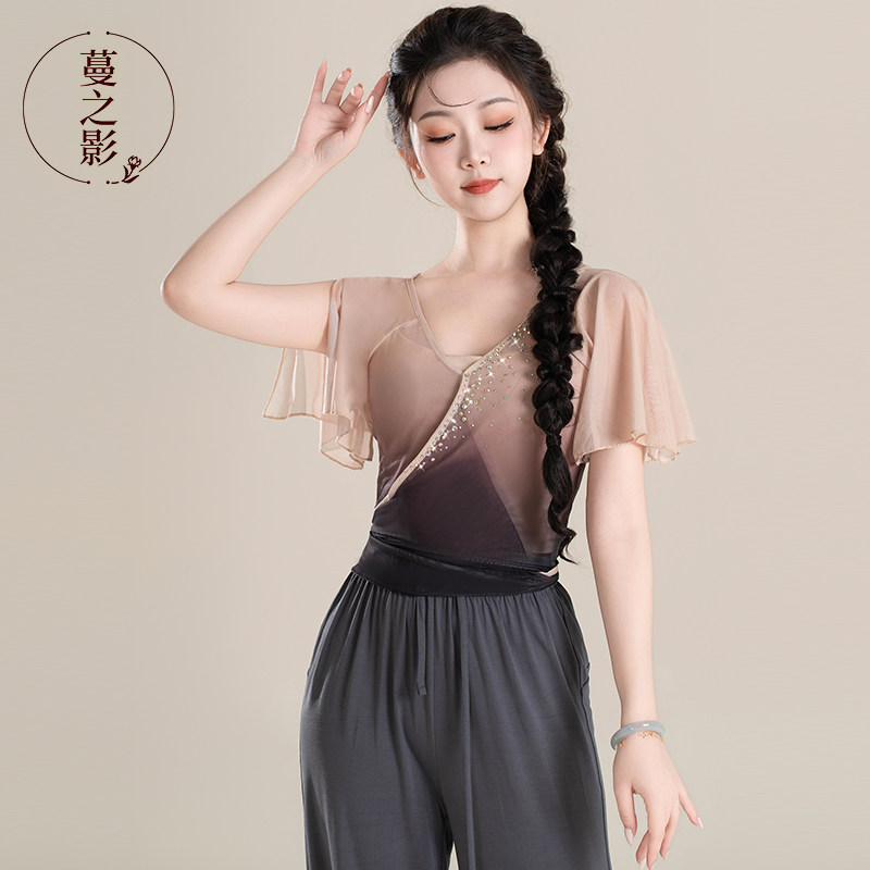 蔓之影古典舞练功服烫钻纱衣女现代舞短袖 上衣舞蹈生艺考演出服装