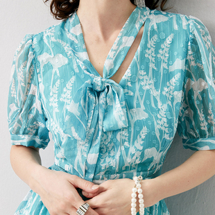 赫本气质复古派对显瘦年代感翻领复古大摆短袖 波点连衣裙表演度假