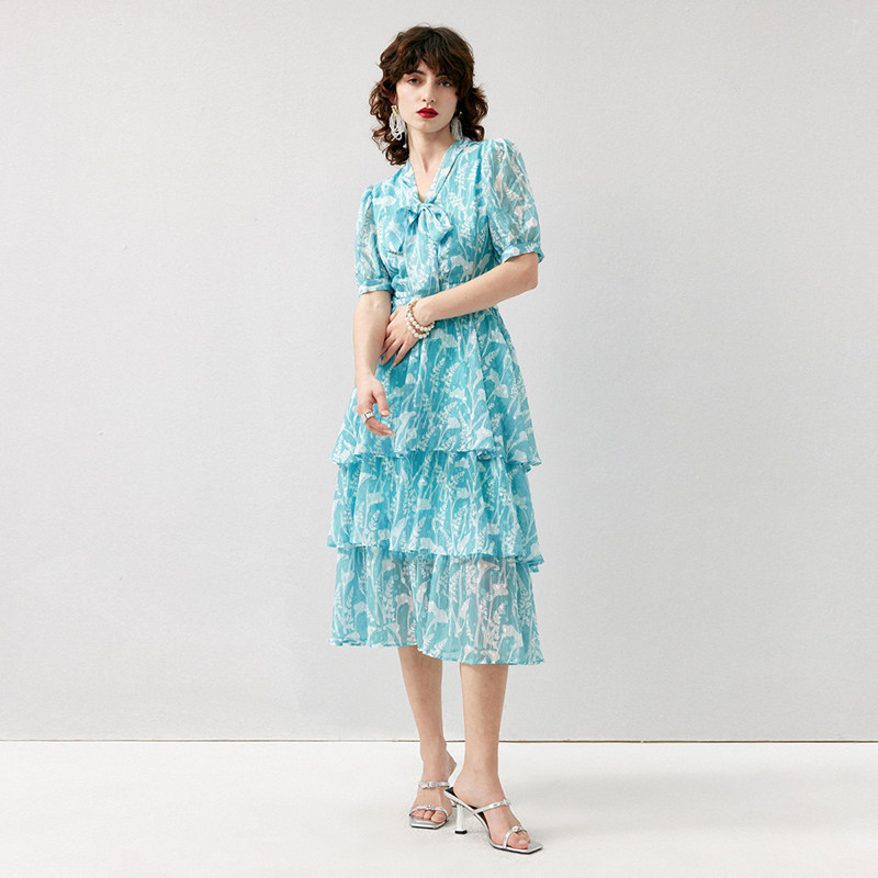 大摆连衣裙礼服裙 裙子2020亚马逊夏季 复古修身 纯色短袖 DRESS 新款