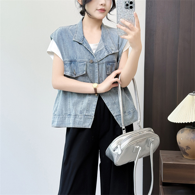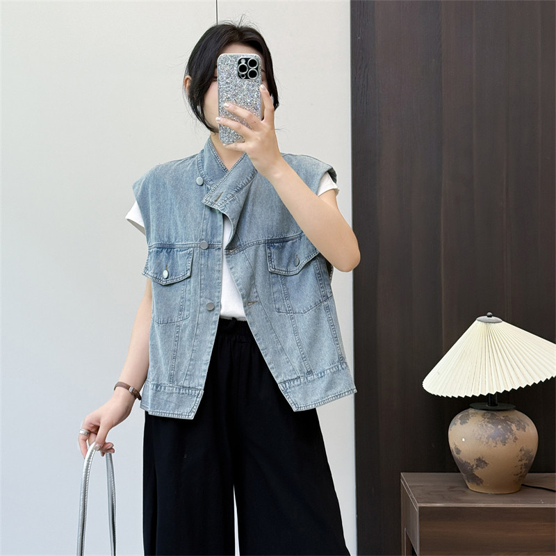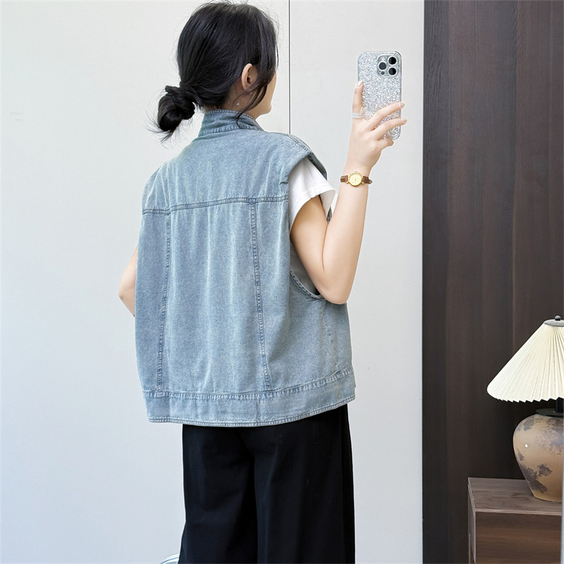 惠衣阁夏季 休闲做旧牛仔马甲牛仔外套 女牛仔马夹薄牛仔背心韩版