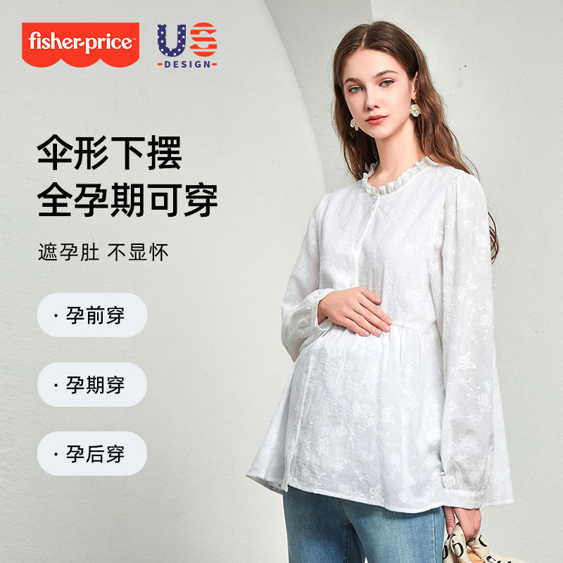 春装 孕期穿搭套装 上衣孕妈衬衫 纯棉娃娃衫 女春秋孕妇裤 费雪孕妇装