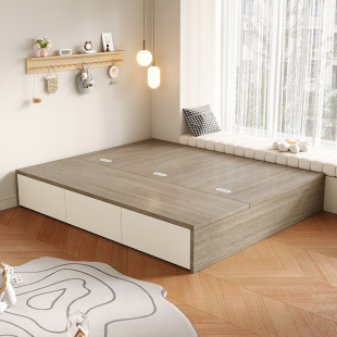 现代简约实木床1.8米主卧双人床1.5M单人经济型高箱储物大床