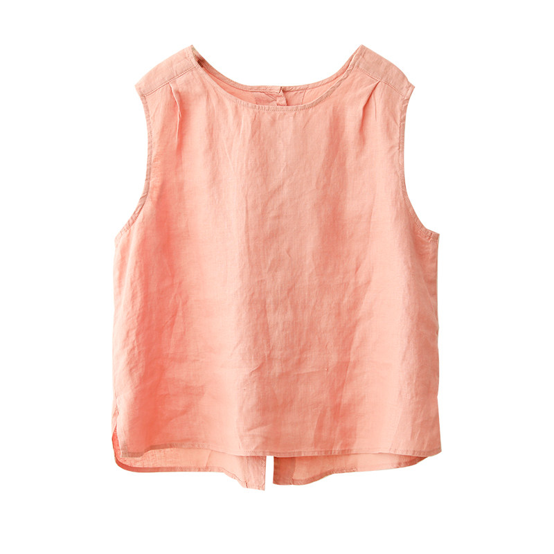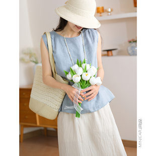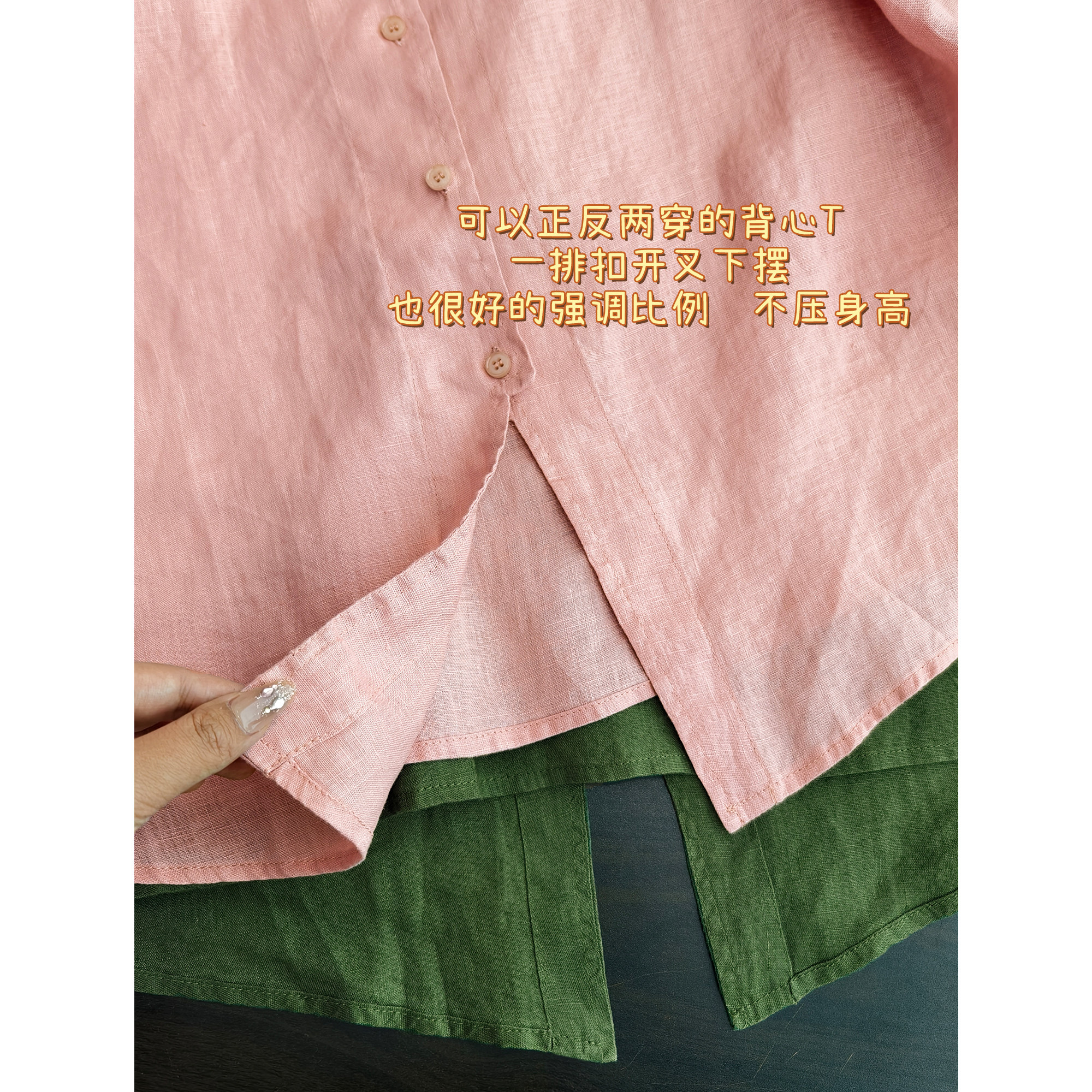 小耳出品100%亚麻柔软亲肤透气休闲气质正反两面穿无袖 背心上衣