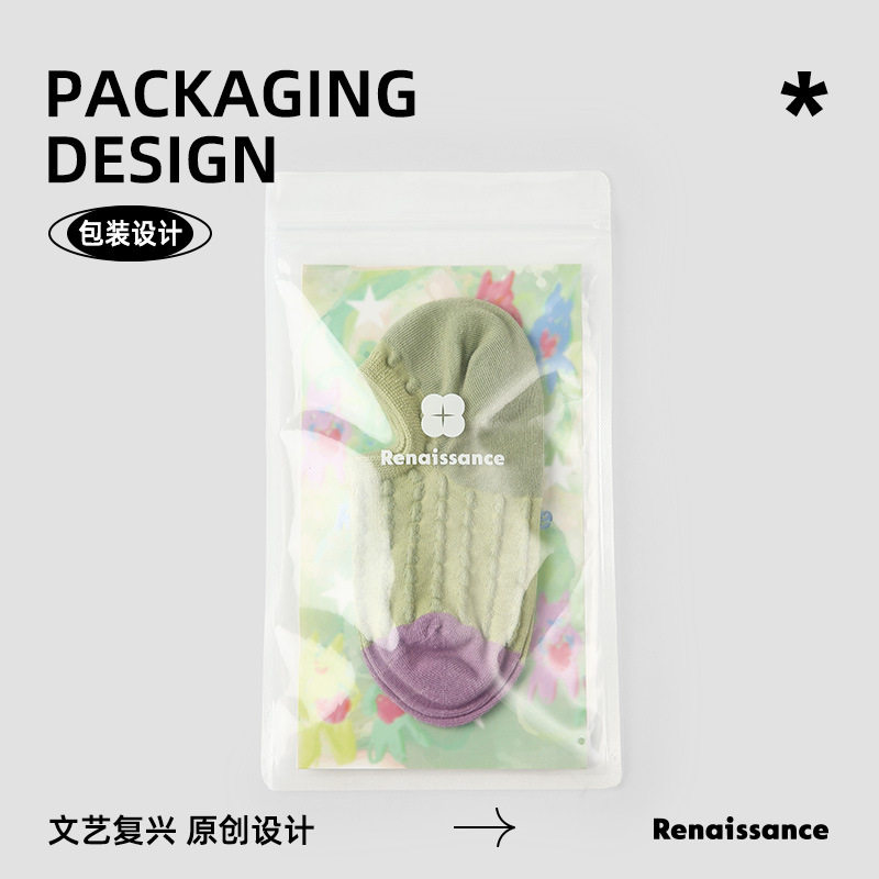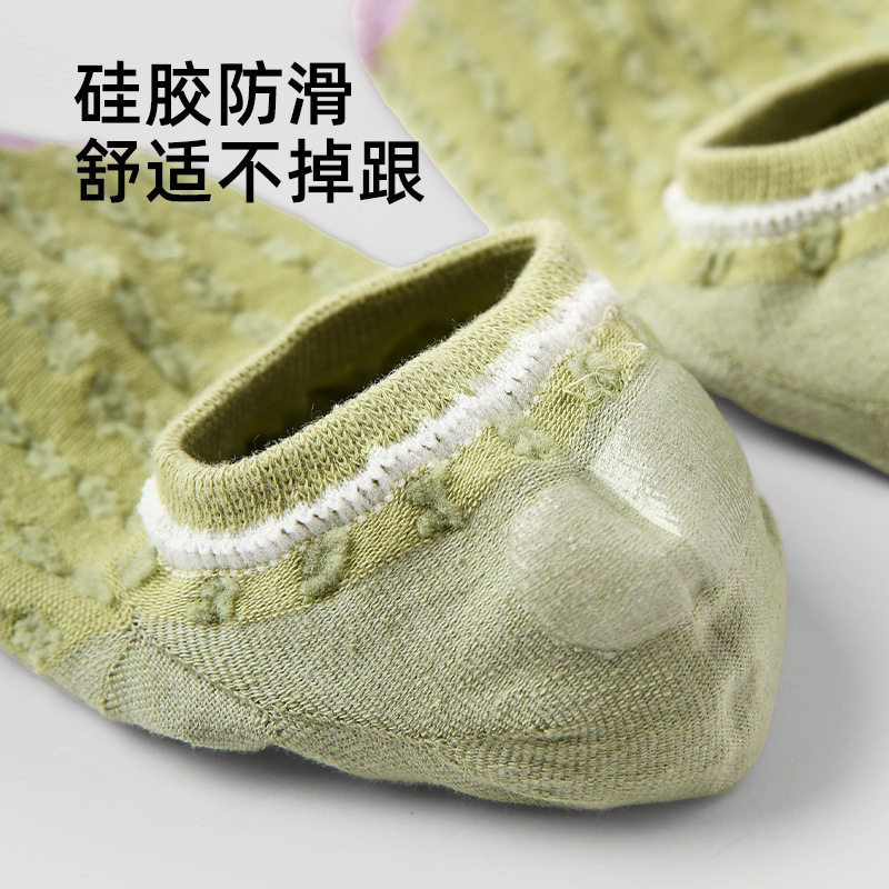 Renaissance袜子女夏季 透气短袜复古浮雕针织不掉跟隐形船袜 薄款